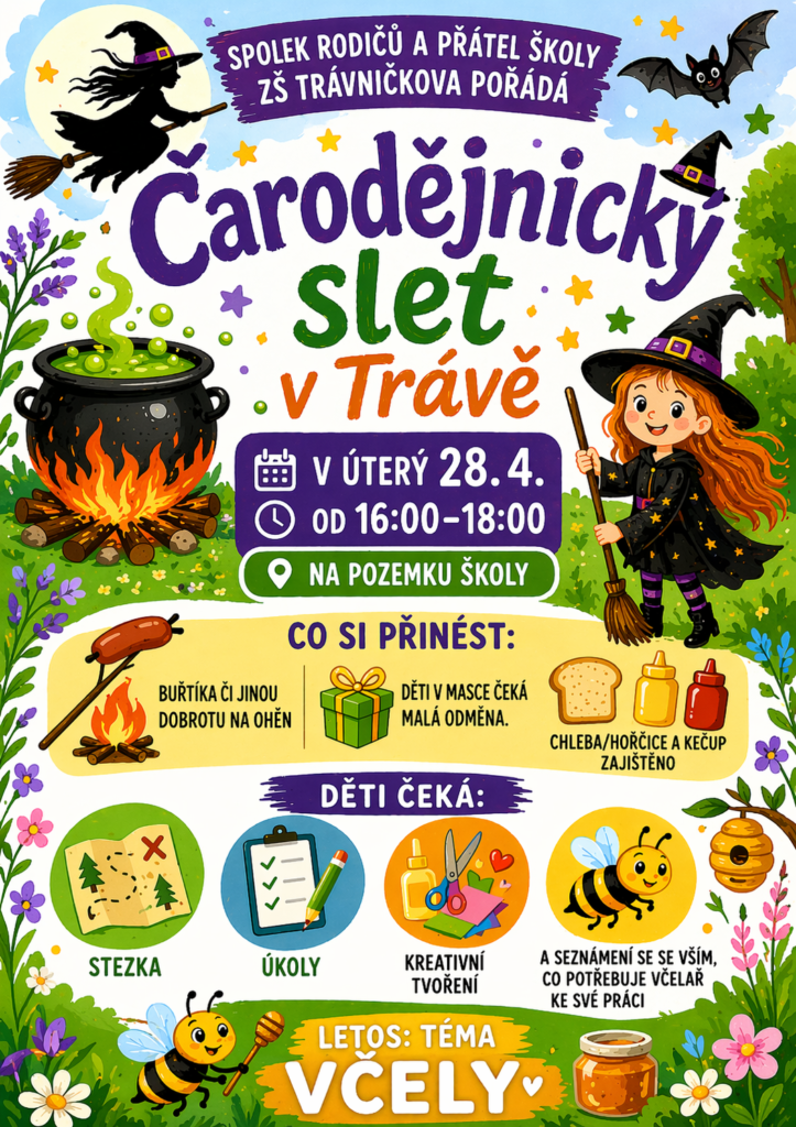 Spolek rodičů a přátel školy vás srdečně zve na již tradiční akci – Čarodějnice v Trávě.