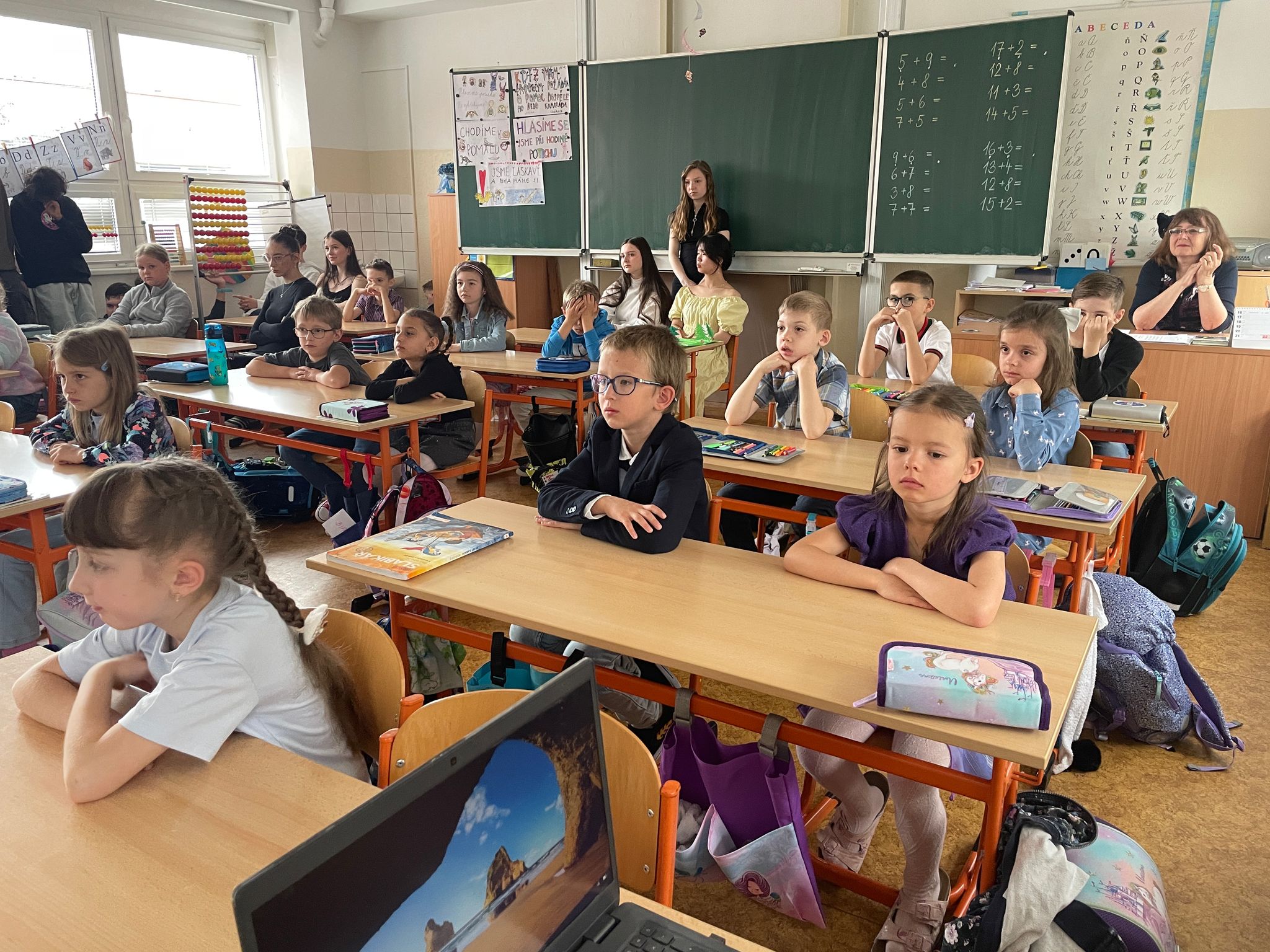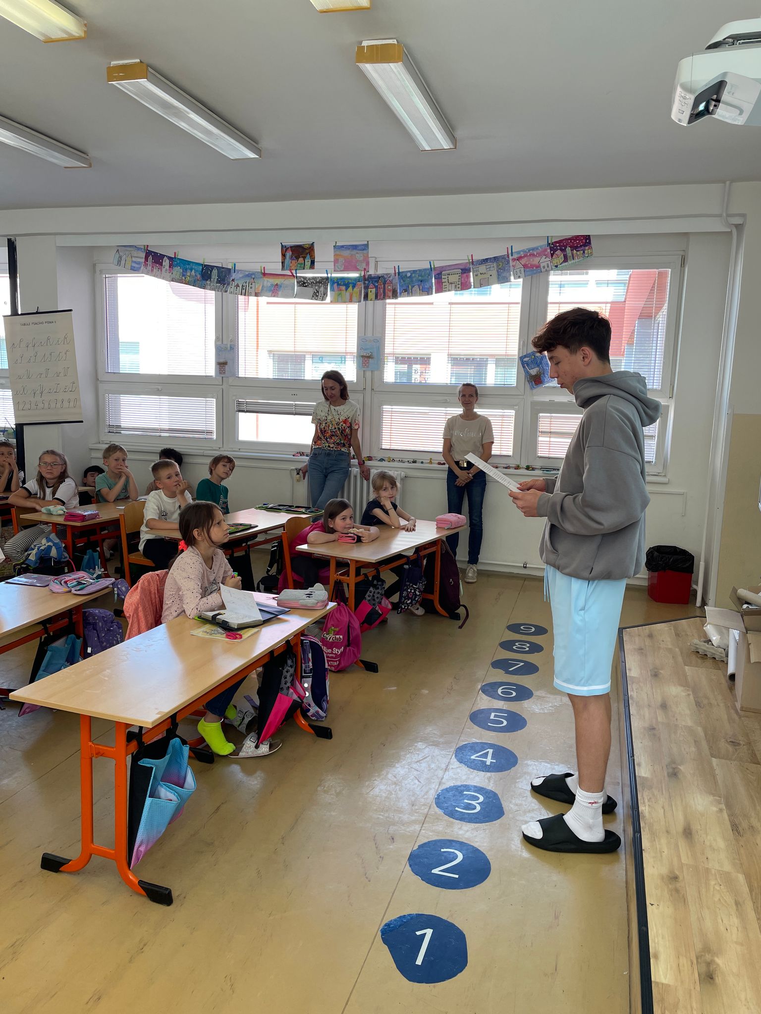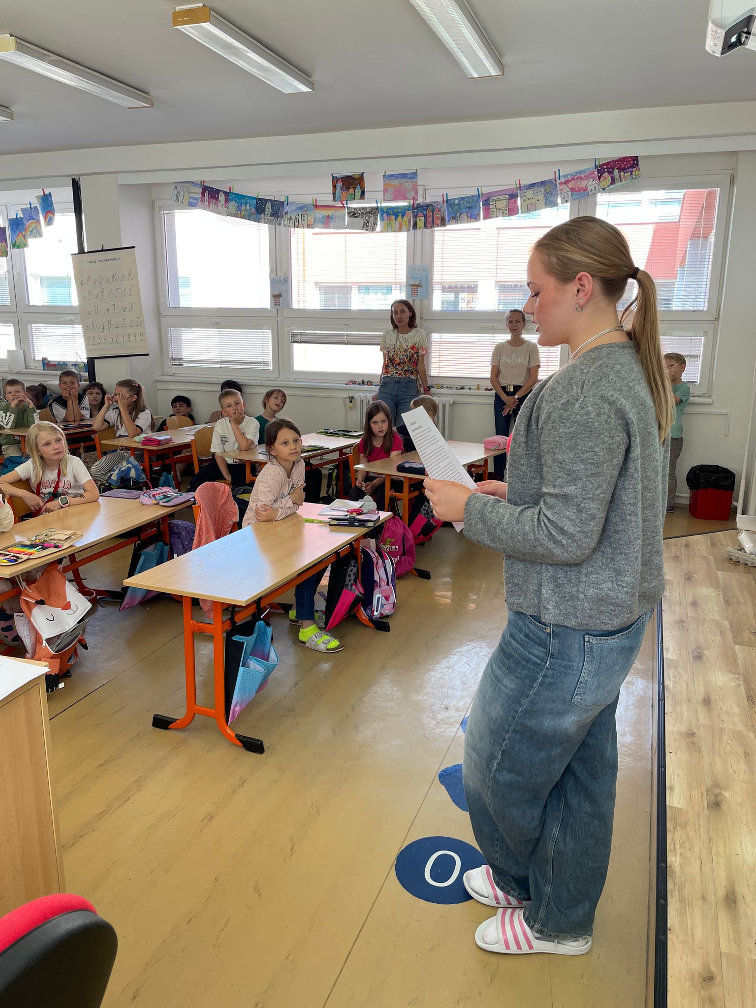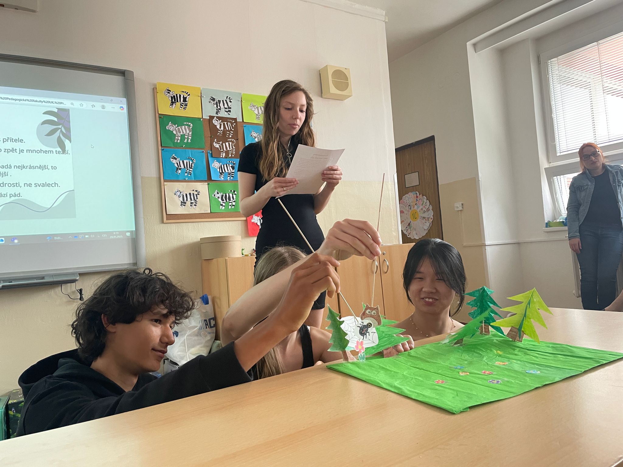 Deváťáci tvořili v hodině českého jazyka autorské bajky. Poté s nimi dále pracovali. Některé namluvili jako audionahrávku, některé zdramatizovali, k jedné vytvořili kulisy s loutkami. Všechny bajky pak představili nejmenším divákům a posluchačům naší školy, prvňáčkům. Těm se bajky natolik líbily, že se rozhodli je zilustrovat. Těšíme se na výslednou knihu bajek, která propojí nejmenší a nejstarší žáky naší školy.