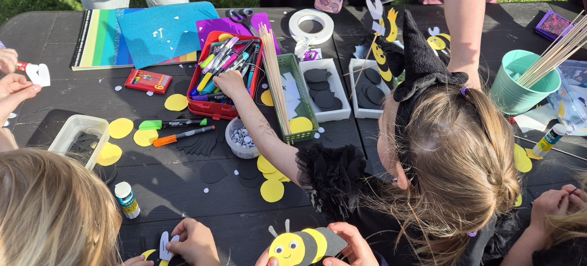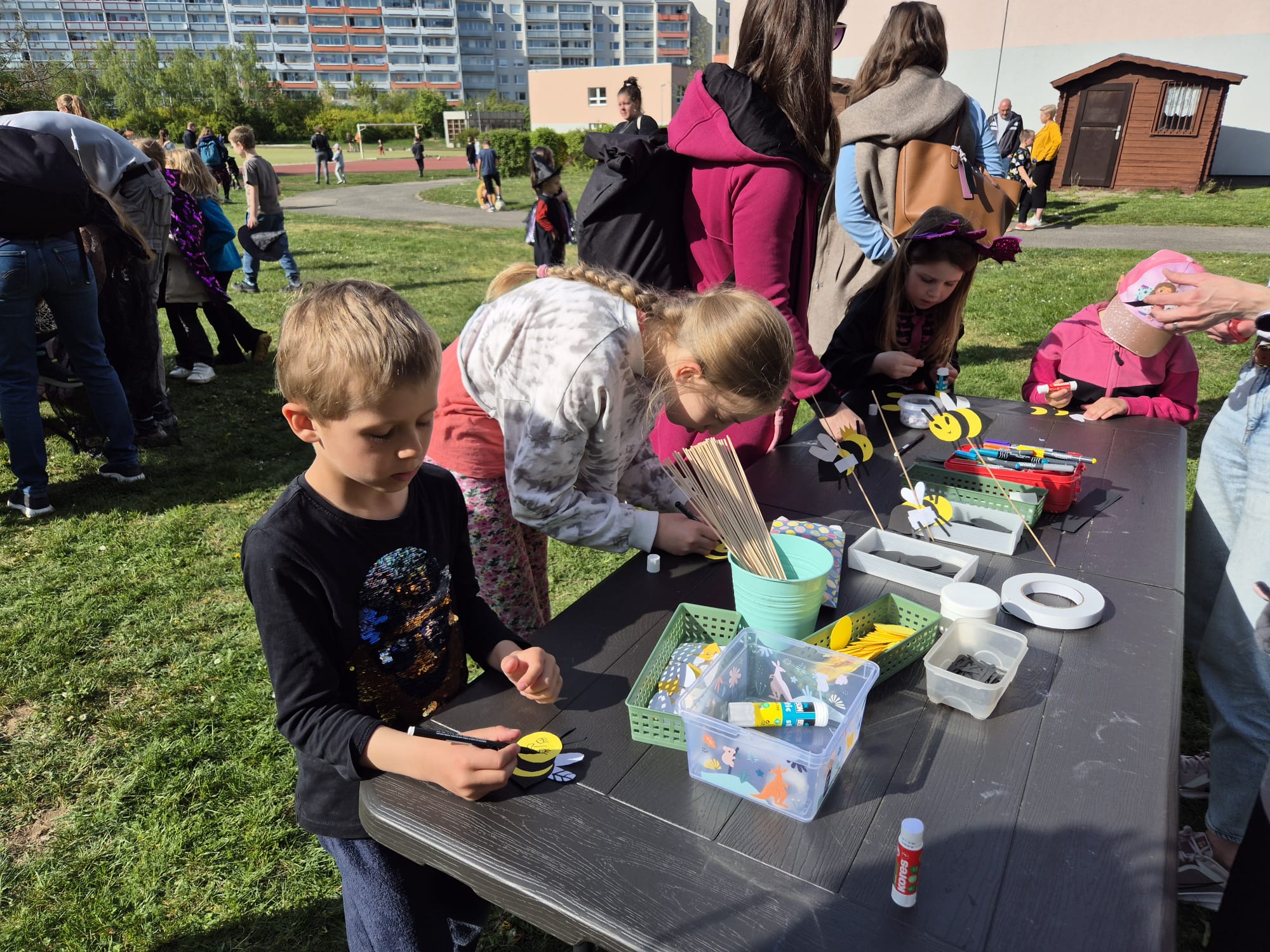 V areálu naší školy se v úterý 28.4. uskutečnil již tradiční Čarodějnický slet v Trávě, který i letos připravil Spolek rodičů. Tentokrát se celé odpoledne neslo v originálním duchu – tématem byly včely a jejich fascinující svět.