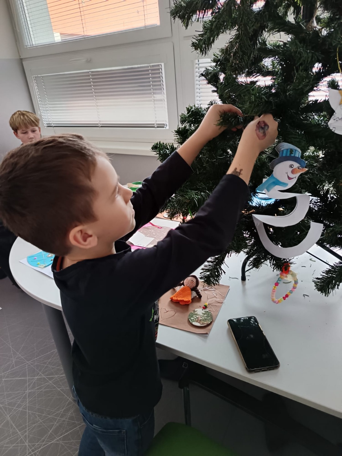 Naše škola se i v roce 2025 zapojila do mezinárodního projektu Evropská výměna vánočních ozdobiček, do kterého se letos přidaly třídy 1. B, 3. B a 5. B. Žáci vyráběli ozdobičky a přáníčka pro partnerské školy v Evropě, a na oplátku jsme obdrželi množství krásných balíčků ze zahraničí. Všechny třídy se společně sešly při společném rozbalování, kde děti obdivovaly vánoční pozdravy i originální ozdoby od svých vrstevníků. Náš evropský vánoční stromeček je nyní, spolu s výstavou ozdob z minulých ročníků, k vidění na chodbě pavilonu A a vytváří krásnou adventní atmosféru.