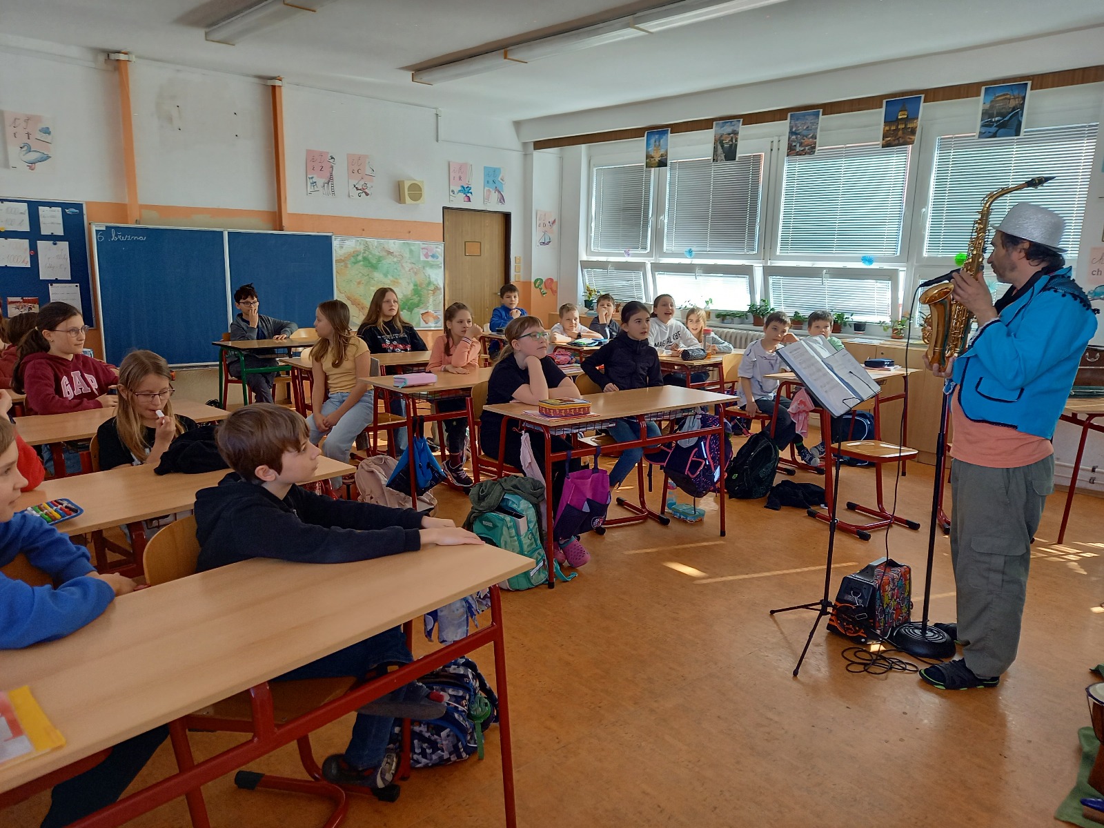 Hodina hudební výchovy se pro děti ze 3.D a 4.A stala nezapomenutelným zážitkem. Tentokrát se věnovaly poznávání různých hudebních nástrojů nejen sluchem, ale i zrakem. Děti měly možnost si jednotlivé nástroje prohlédnout, poslechnout jejich zvuk a dozvědět se zajímavosti o jejich využití.