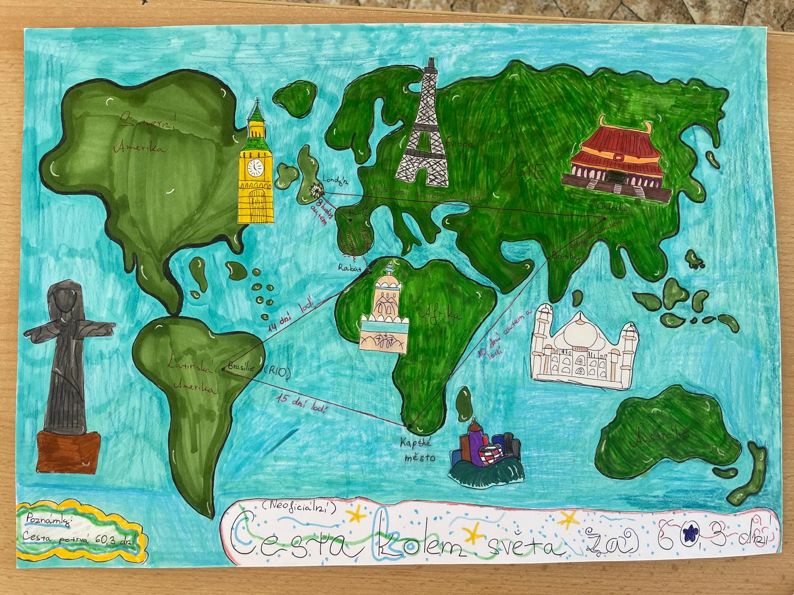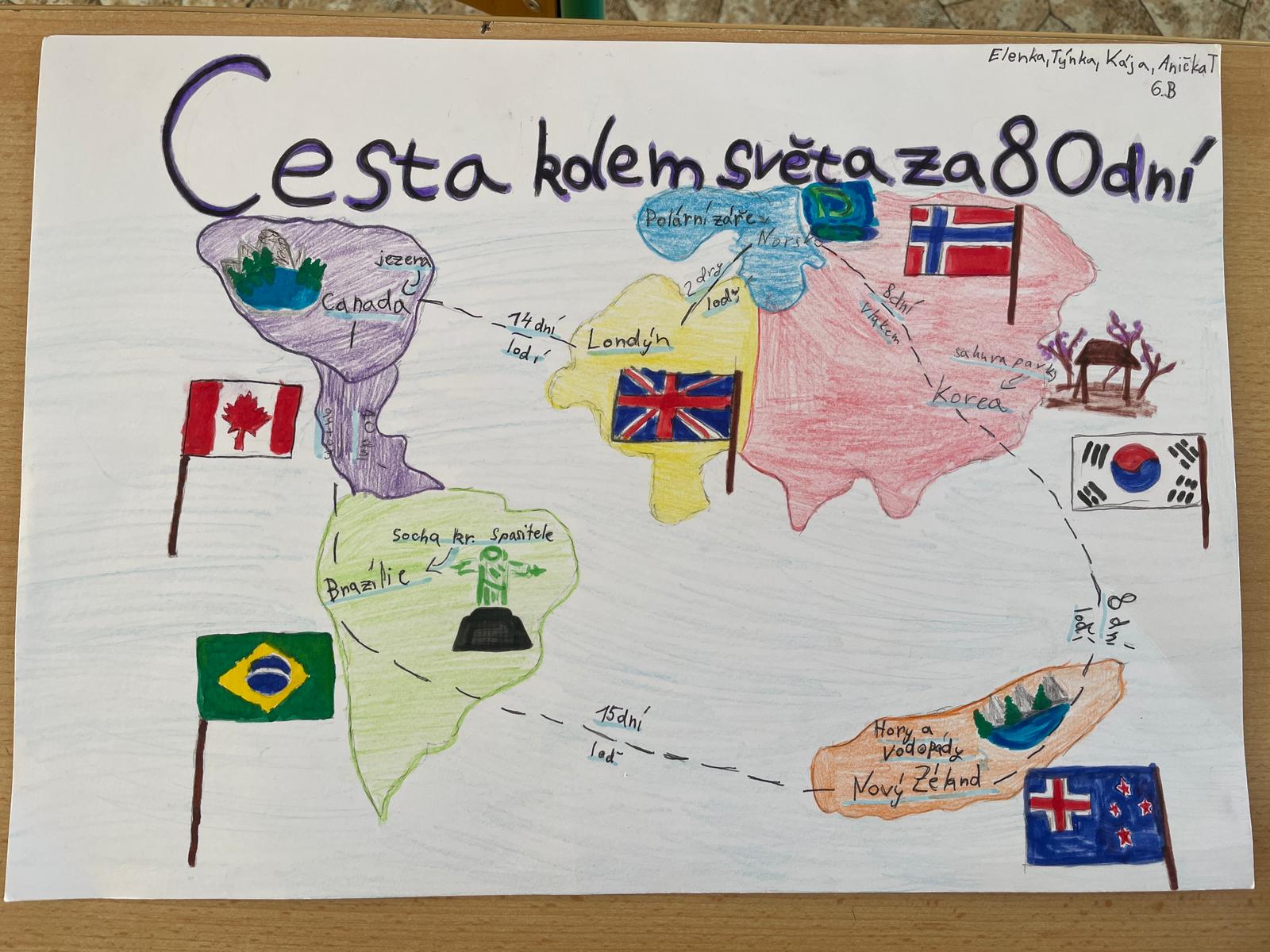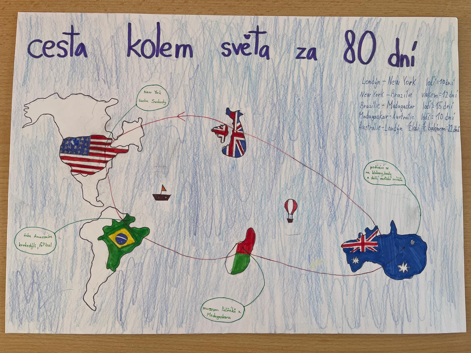 V hodinách literatury jsme se seznámili s dílem Julesa Verna, zejména s jeho slavným románem Cesta kolem světa za 80 dní. Tento dobrodružný příběh nás inspiroval k vlastnímu projektu – vytvořit si svou vysněnou cestu kolem světa.