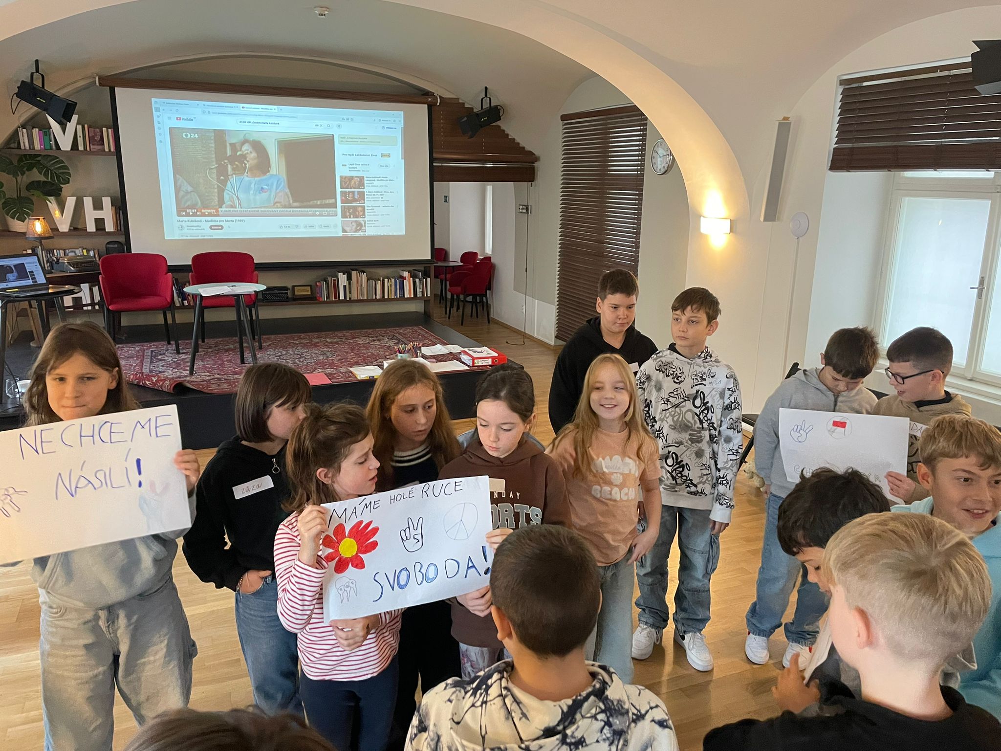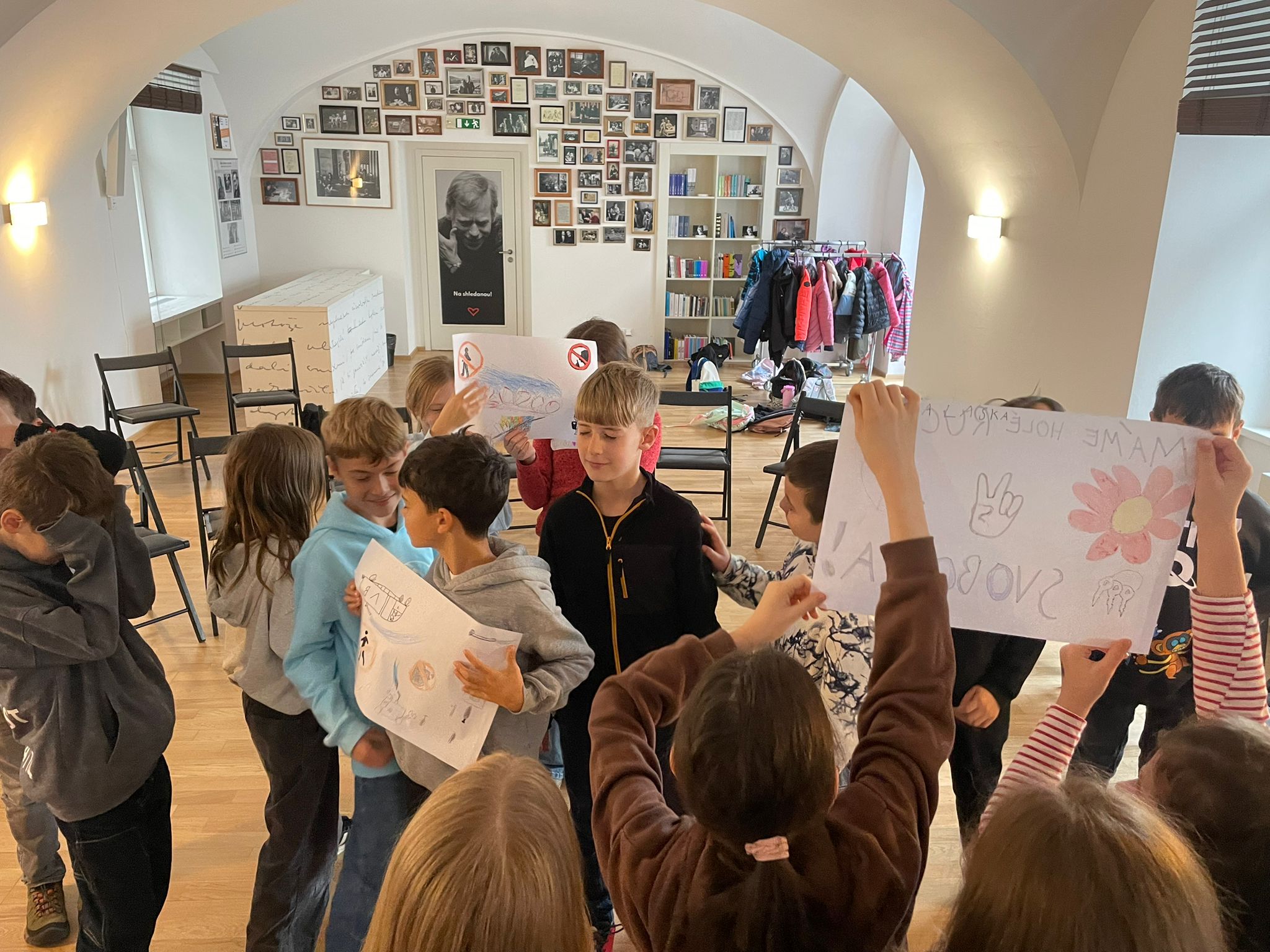 V mezidobí voleb, oslav vzniku Československa a 17. listopadu se žáci 4.A vydali do Knihovny Václava Havla. Témata svobody, demokracie a občanské zodpovědnosti nám nejsou cizí – povídáme si o nich už od 1. třídy, a tak jsme se na program Cesta ke svobodě moc těšili.