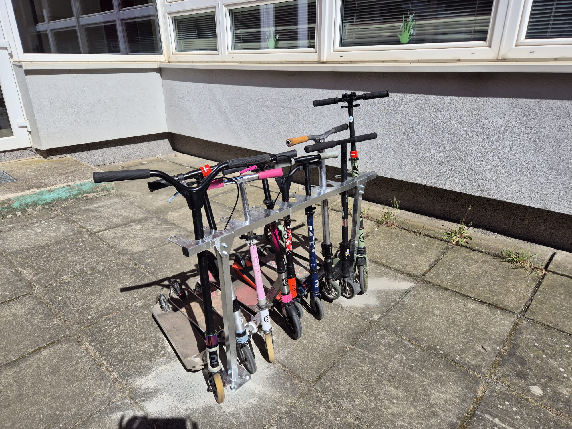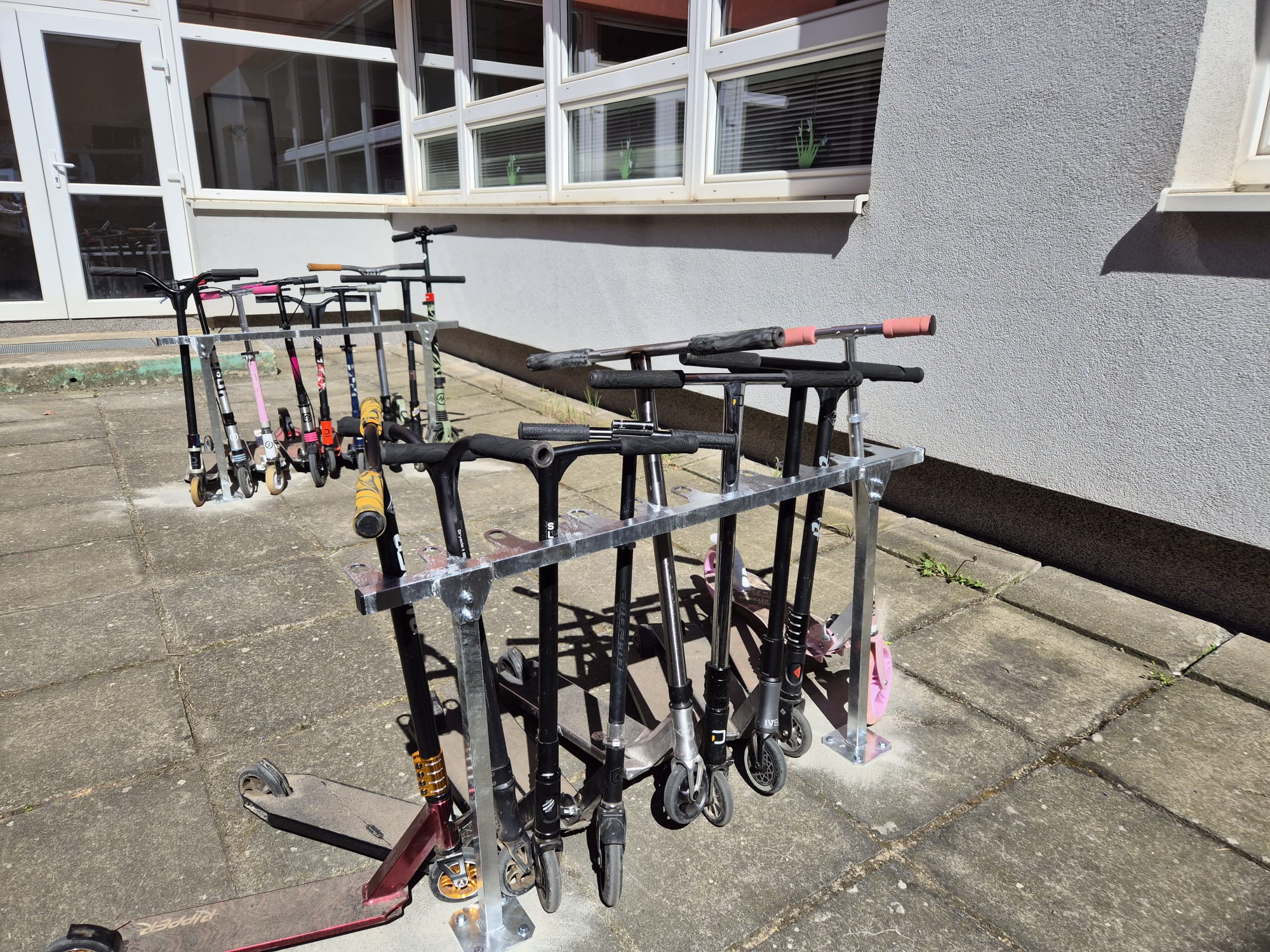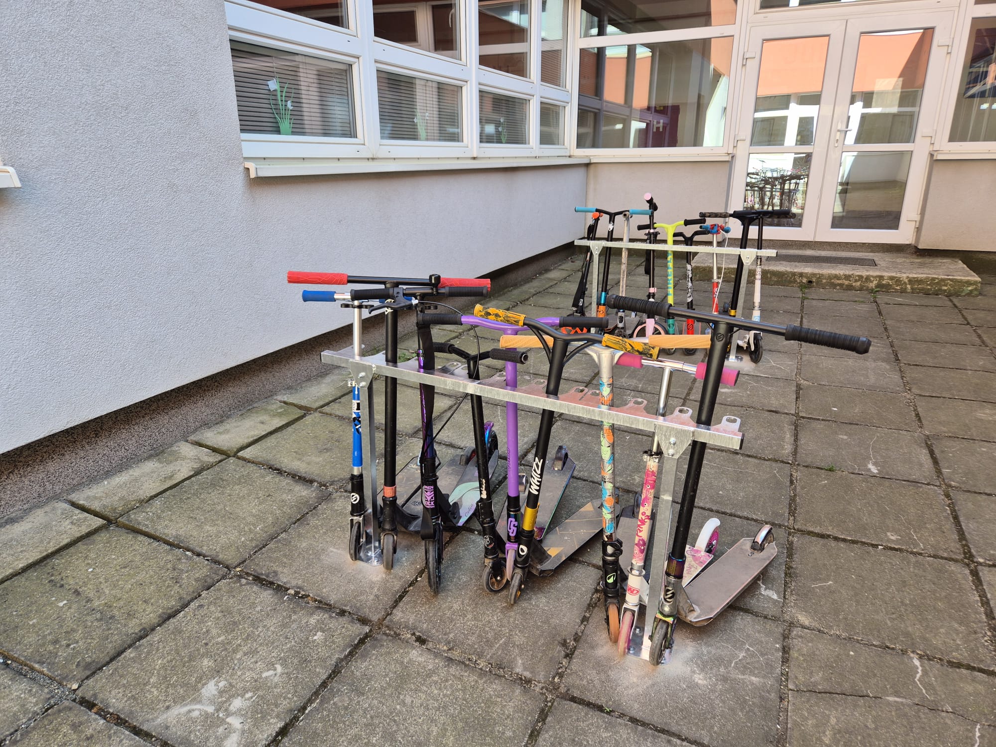 S ohledem na bezpečnost a lepší organizaci prostoru jsme v atriu školy instalovali nové stojany na koloběžky. Reagujeme tak na stále častější využívání koloběžek jako dopravního prostředku našich žáků.