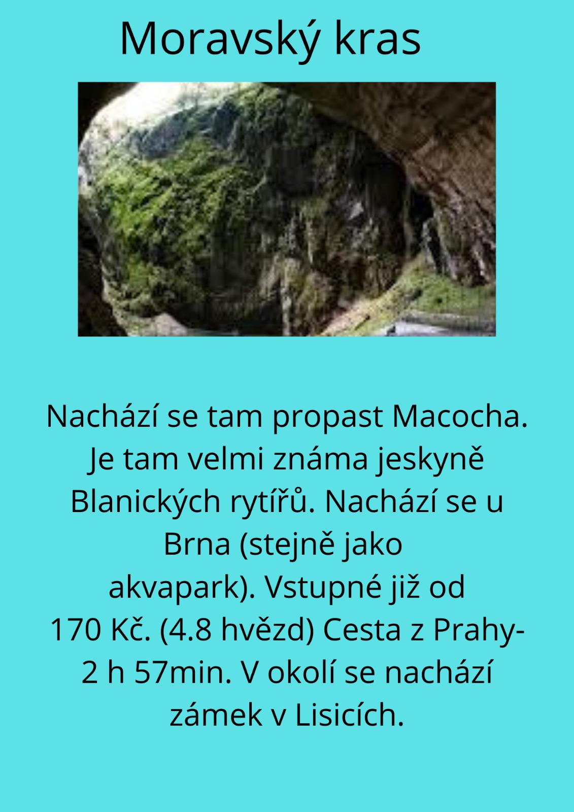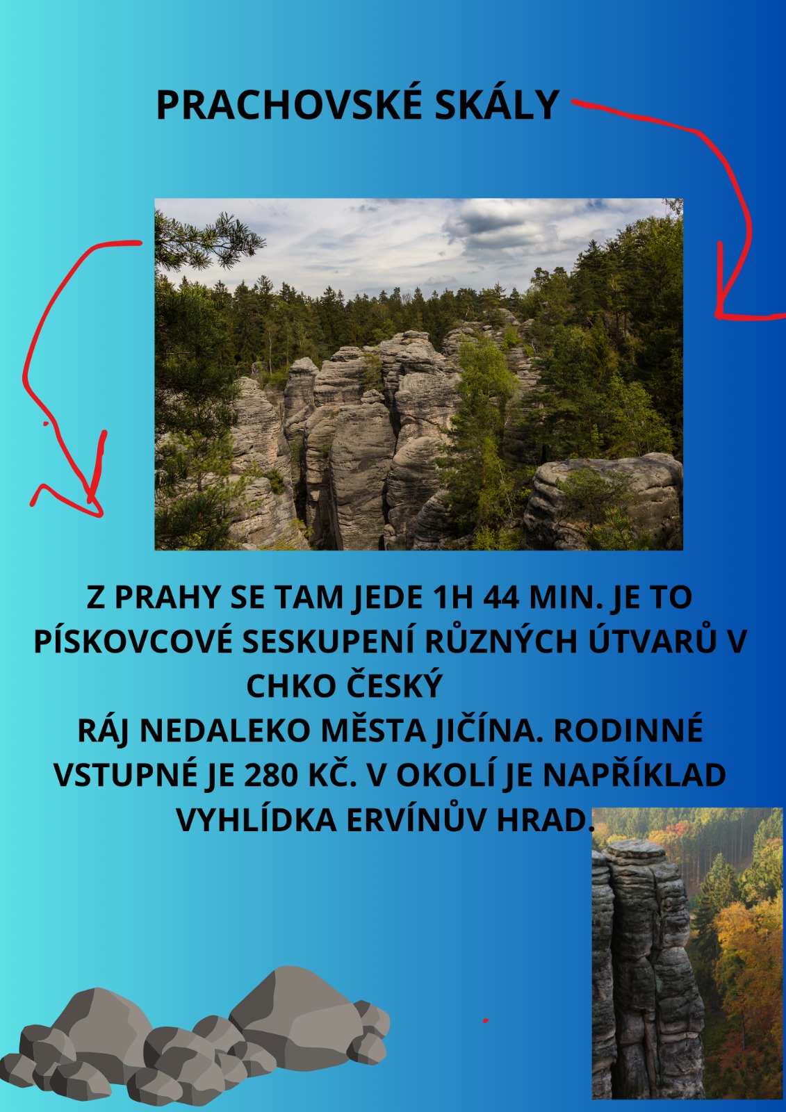 Nevíte, kam na výlet o prázdninách? Můžete se inspirovat u 4. B. Celý květen a červen jsme pro vás zjišťovali informace o různých památkách po celé ČR. Nenechali jsme nic náhodě a proto mají naši favoriti lákajících letáčků víc. Také se hned dozvíte, co dalšího vidět v okolí, kolik utratíte za vstupné a jak dlouho pojedete na naplánovanou destinaci z Prahy. Projekt vznikal v rámci vlastivědy a informatiky v canvě i před tím na papíře.