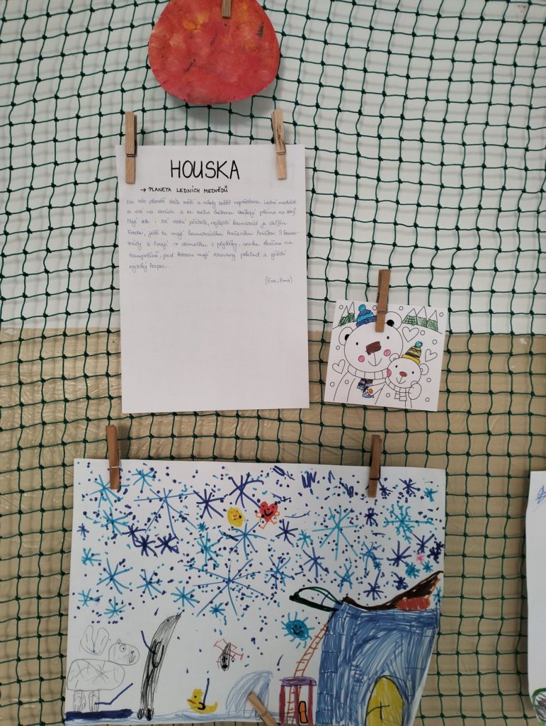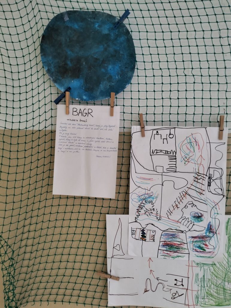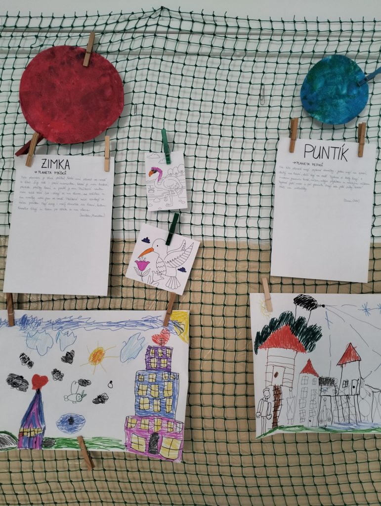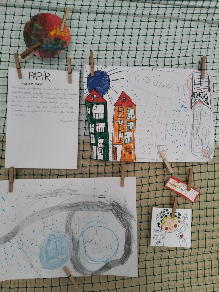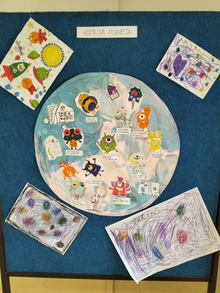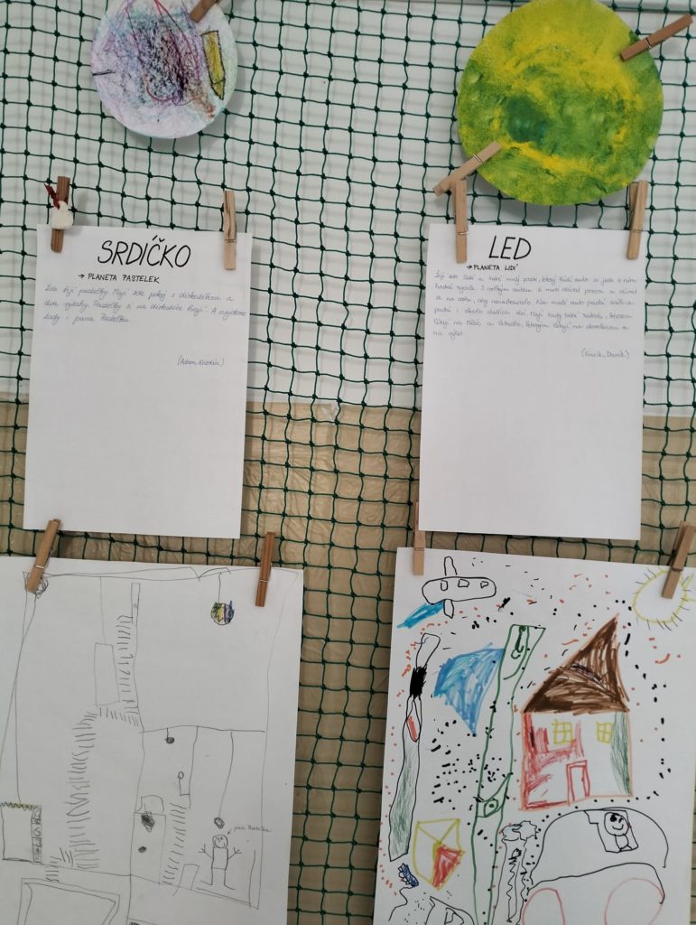 Abychom tam mohli letět, museli jsme si ho nejdřív vymyslet. Rozdělili jsme se do skupinek a začali jsme tvořit. Byla to velká legrace. Objevovali jsme nové planety a kreslili jsme, jak vypadají. 🪐