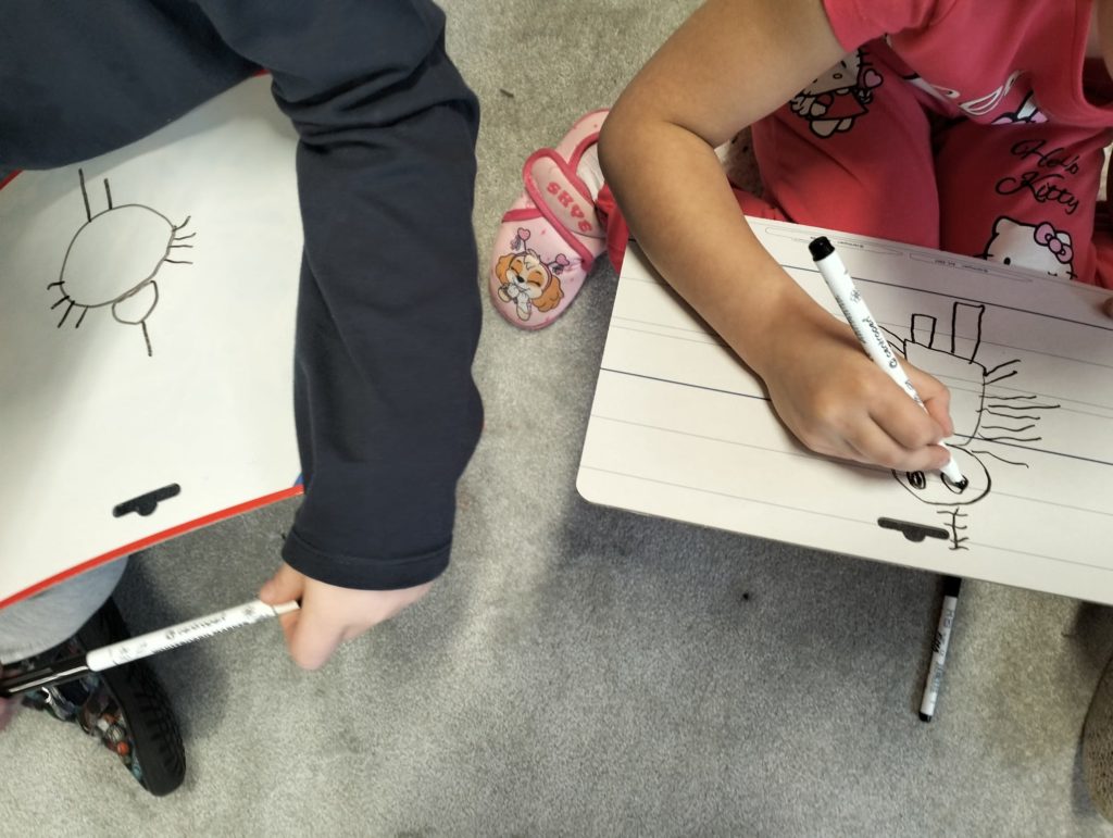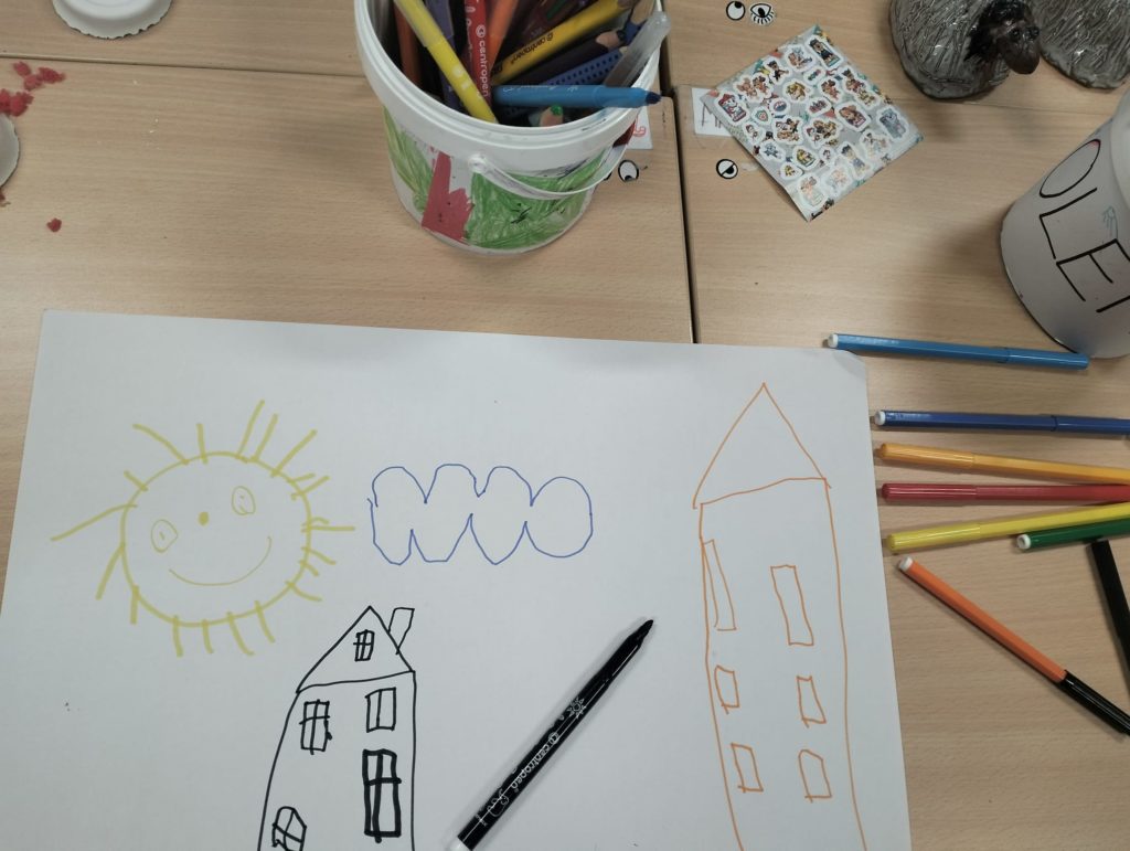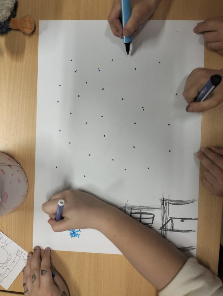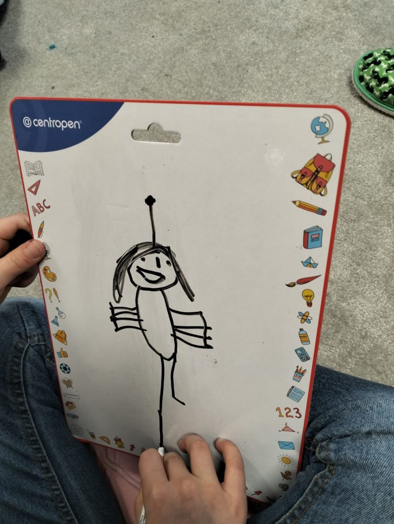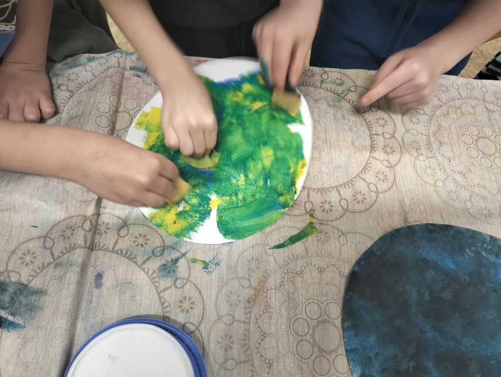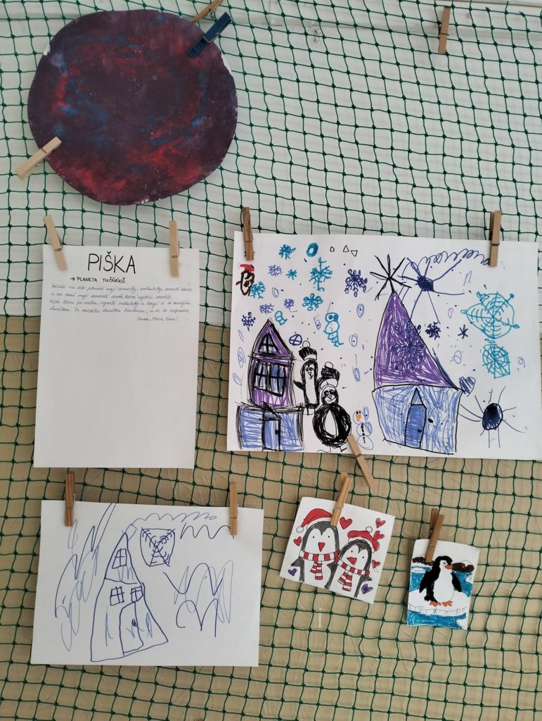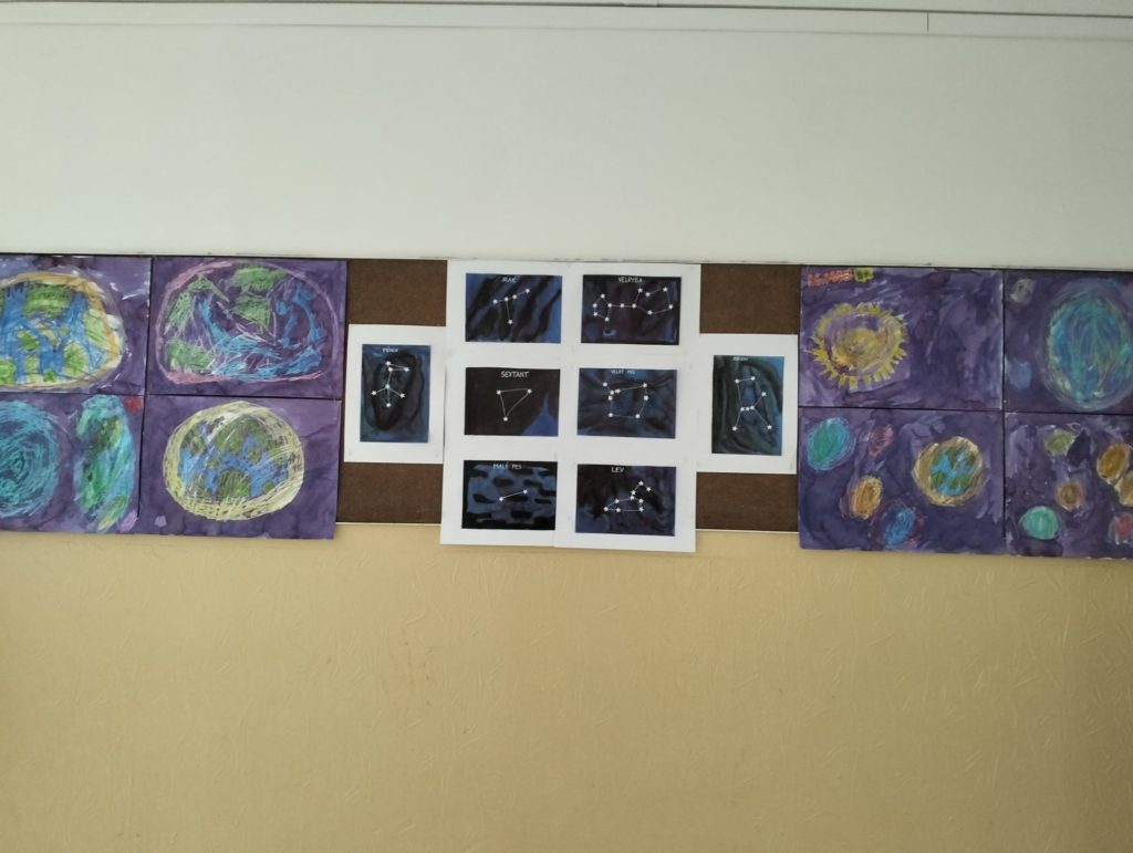 Abychom tam mohli letět, museli jsme si ho nejdřív vymyslet. Rozdělili jsme se do skupinek a začali jsme tvořit. Byla to velká legrace. Objevovali jsme nové planety a kreslili jsme, jak vypadají. 🪐