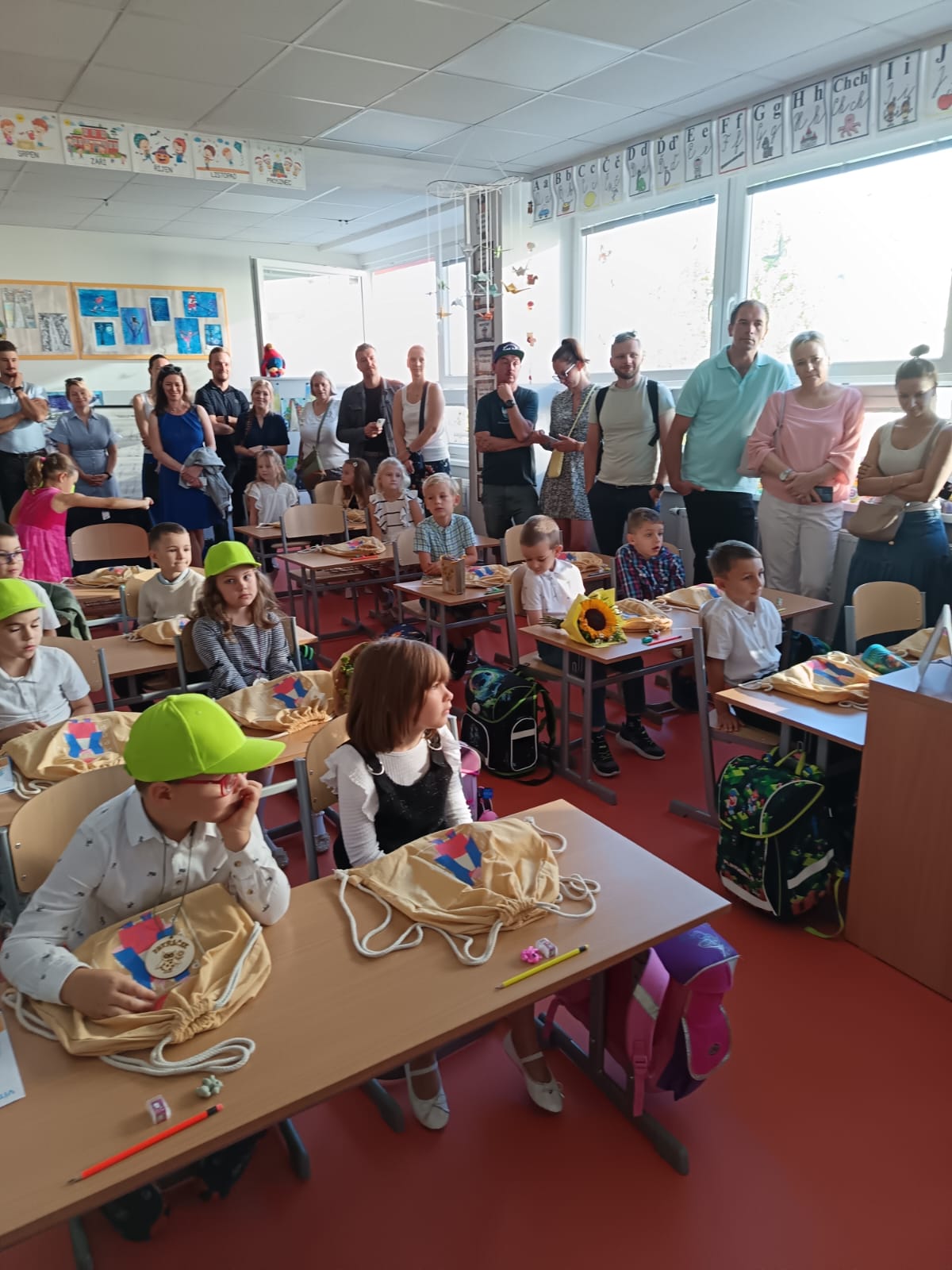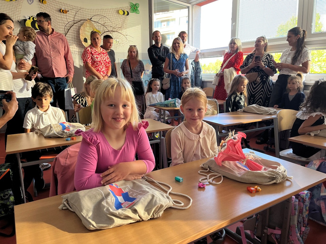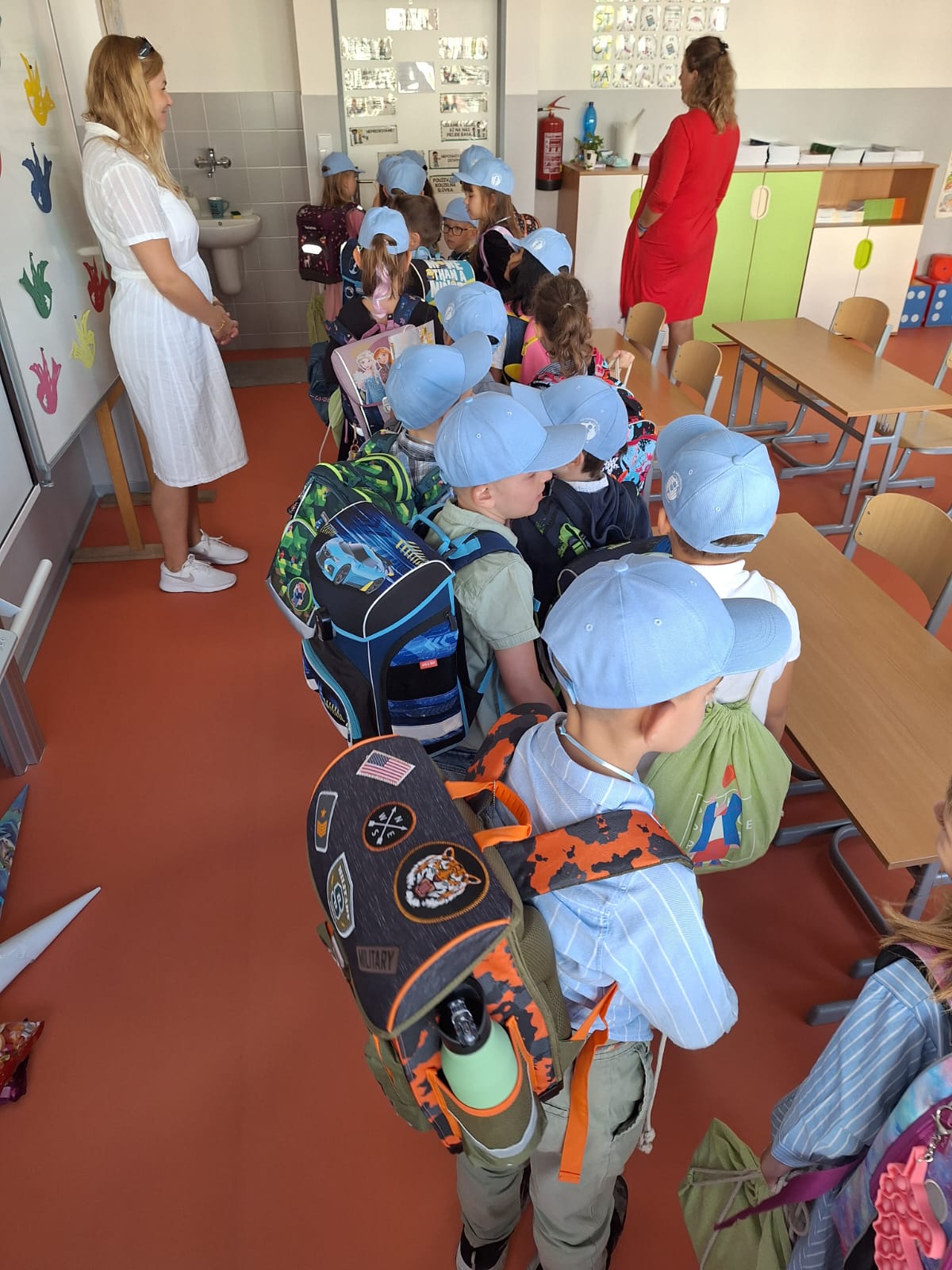 Součástí prvního školního dne bylo i symbolické pasování dětí na školáky. Každý prvňáček si odnesl barevnou kšiltovku, medaili s nápisem „Prvňáček“ a malý dárek na památku. Tento milý rituál dodal celému dni slavnostní nádech a zároveň pomohl dětem cítit se vítaně a bezpečně.