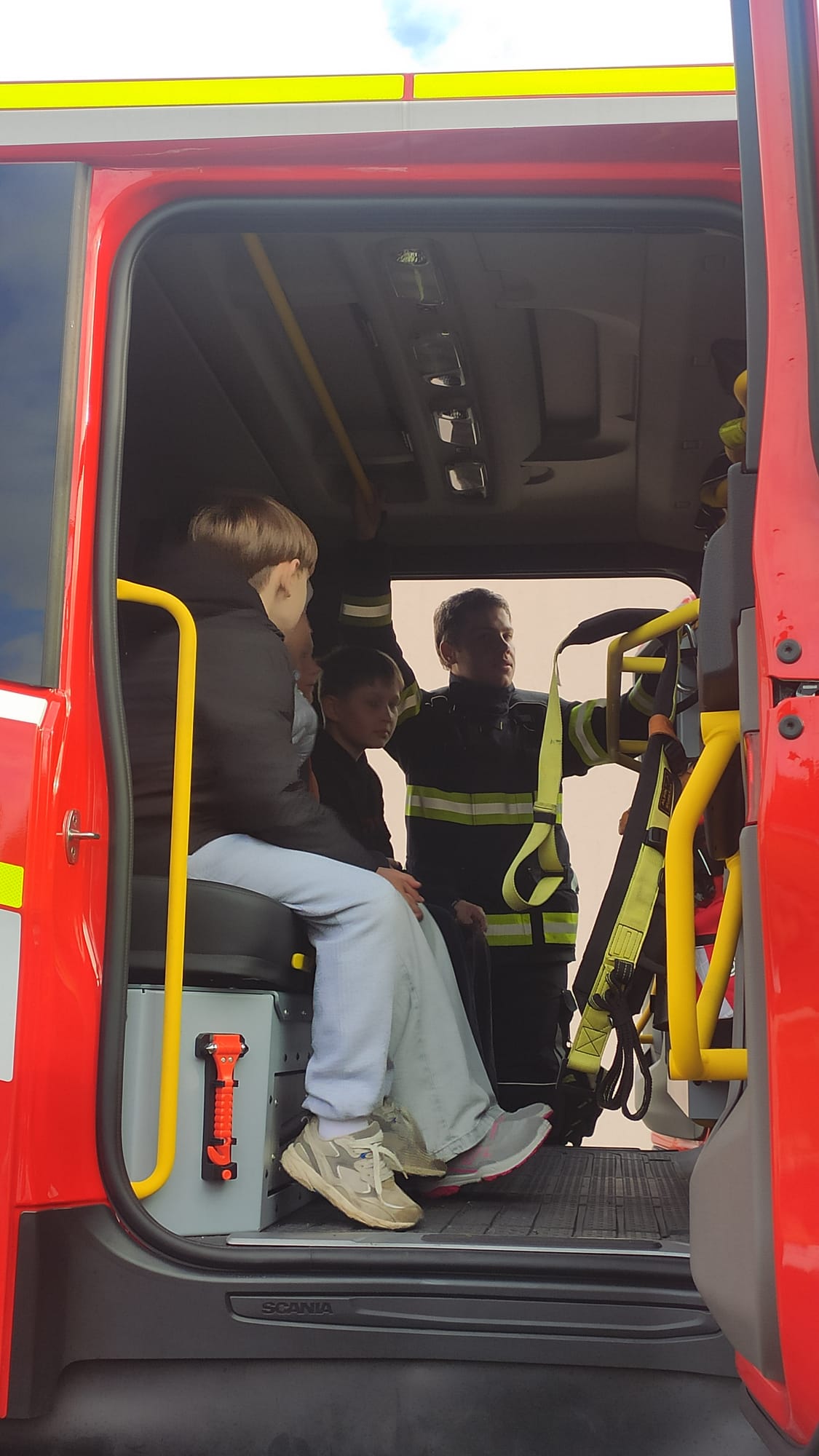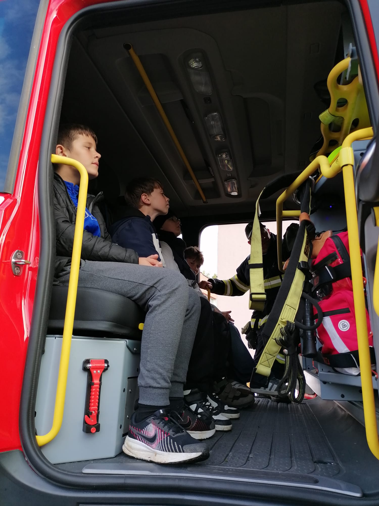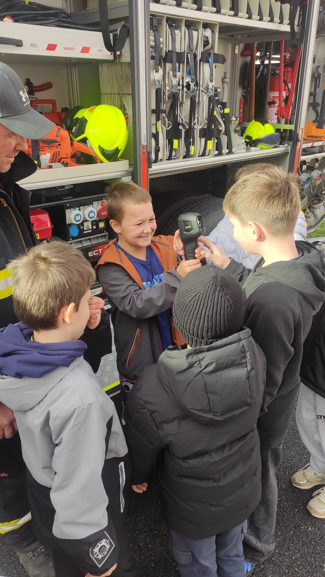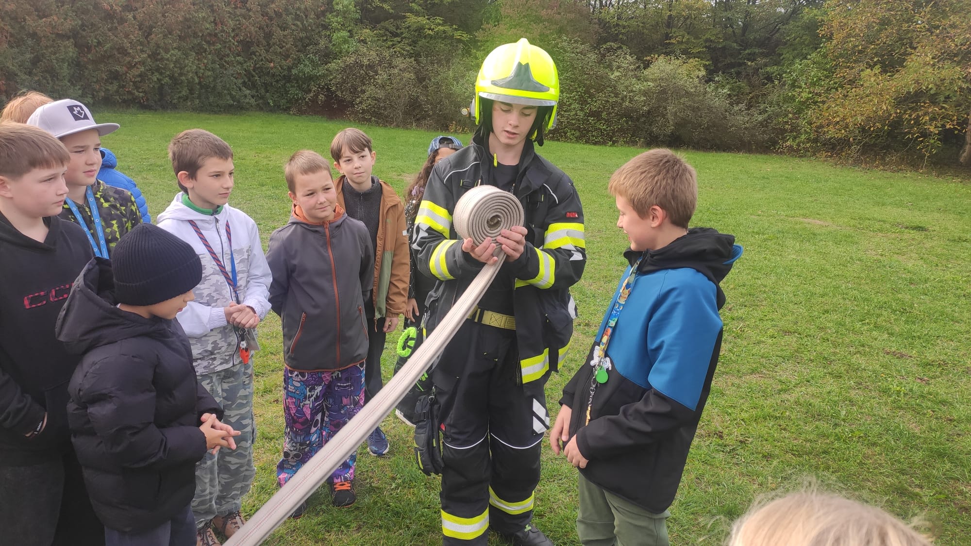 Ve čtvrtek 9. 10. k nám do areálu přijeli s velkým hasičským autem představit svou práci a činnost dobrovolní hasiči ze Stodůlek. Tomáš z deváté třídy našim páťákům a potom i své třídě představil, co všechno jako dobrovolný hasič musí umět a co dělají děti na kroužku hasičů. Hasiči pak trpělivě zodpovídali všechny otázky zvídavých dětí. Páťáci si mohli sednout do hasičského auta a pořádně si ho tak prohlédnout a některé nástroje i obtěžkat. Ukázka byla velmi vydařená a děti nadšené. Děkujeme!