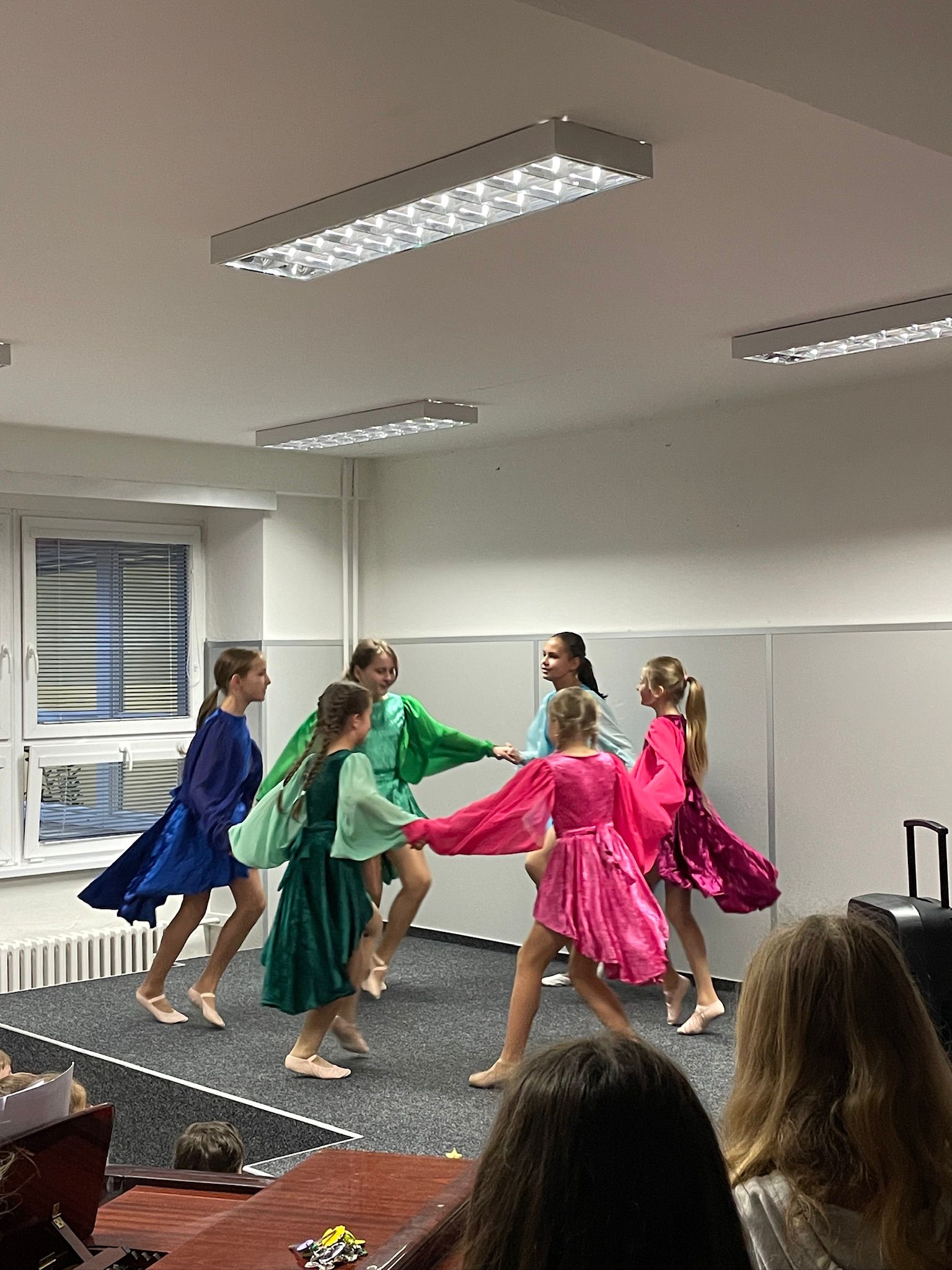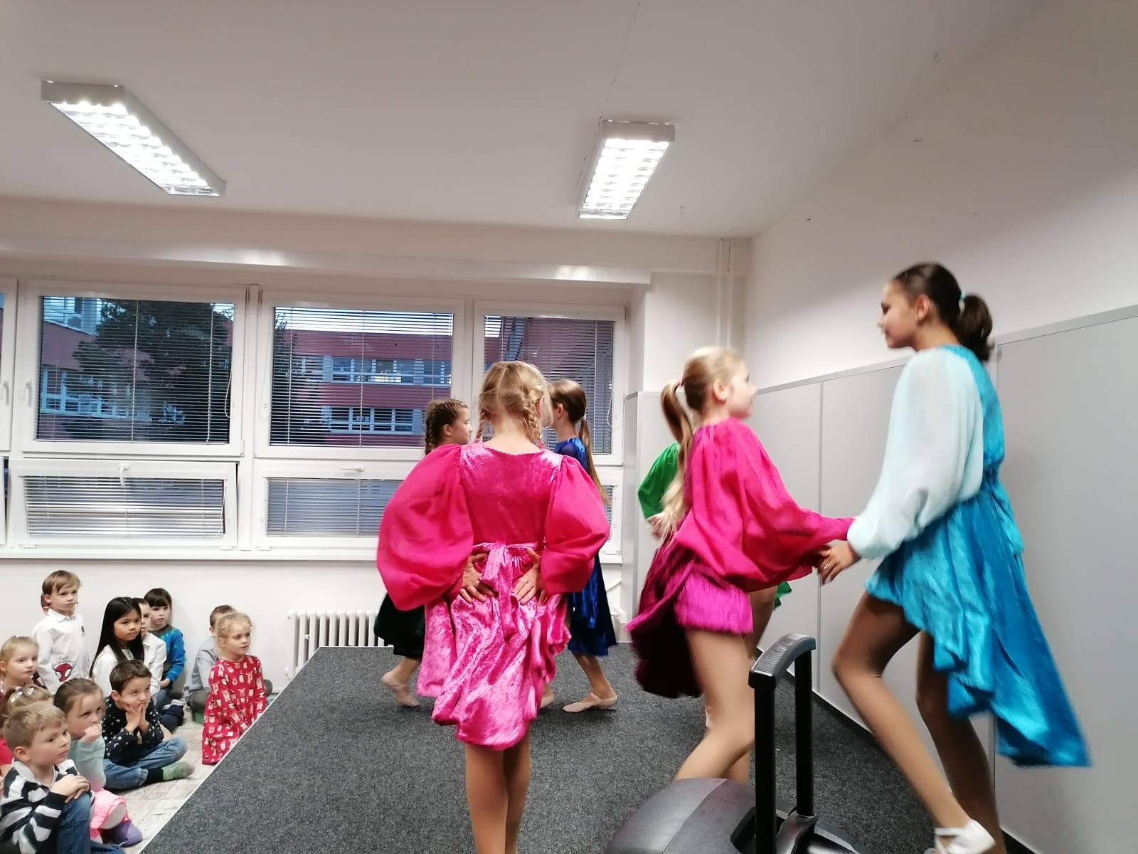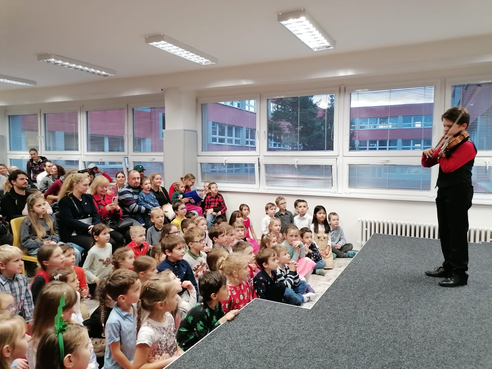 Vánoce v Trávě patří již k tradičním akcím naší školy. Letošní vánoční jarmark zahájili naši nejmenší žáci – prvňáčci, kteří se představili svým vánočním pásmem. Na jejich vystoupení navázala sólo hra na housle Tadeáše z 5. třídy a poté následovalo vystoupení taneční skupiny Mirabel.
