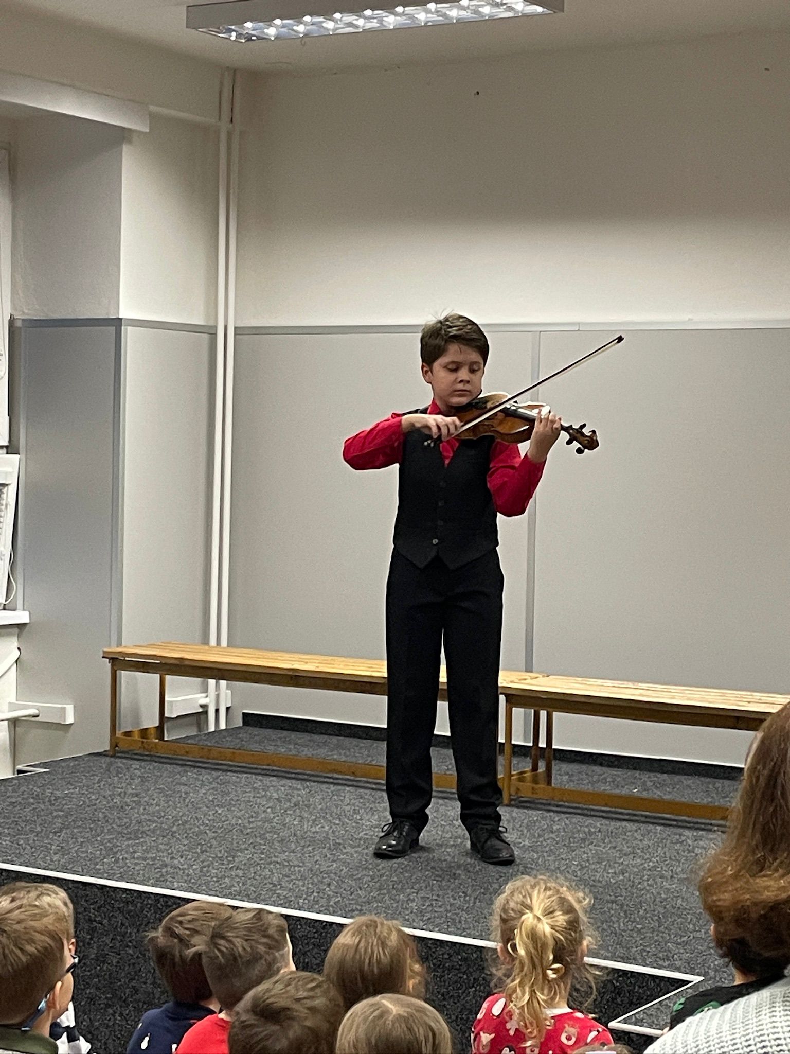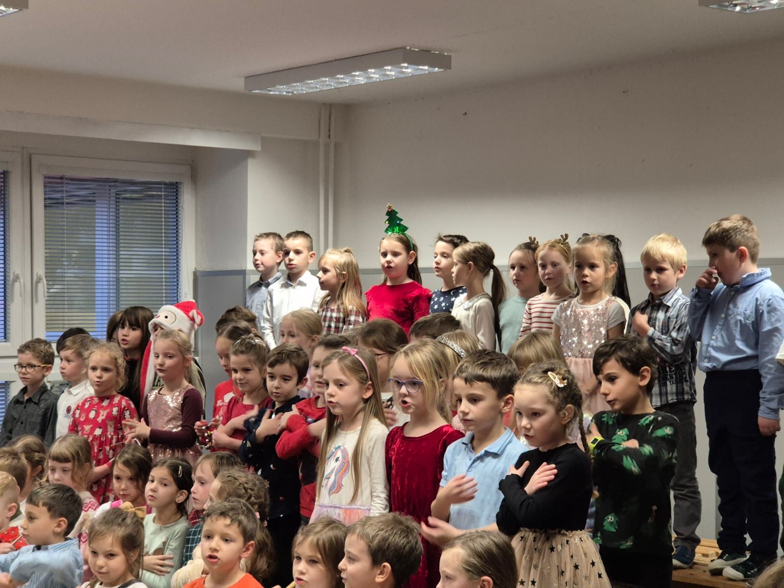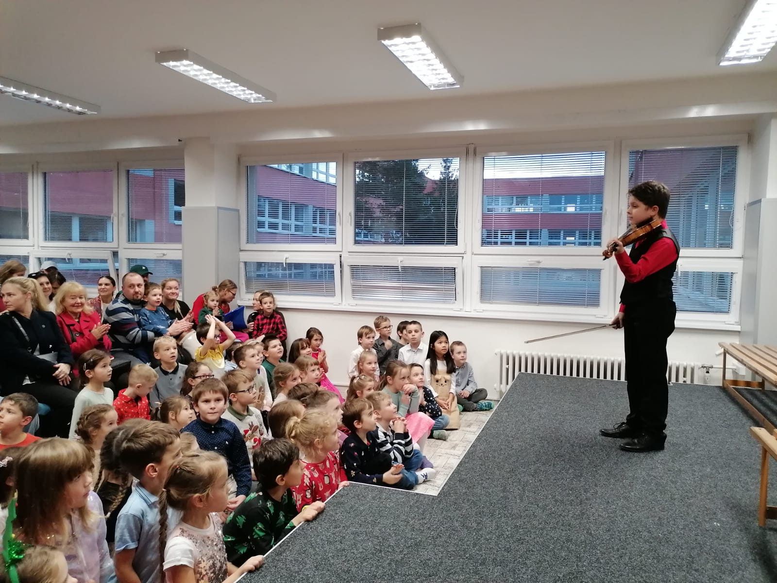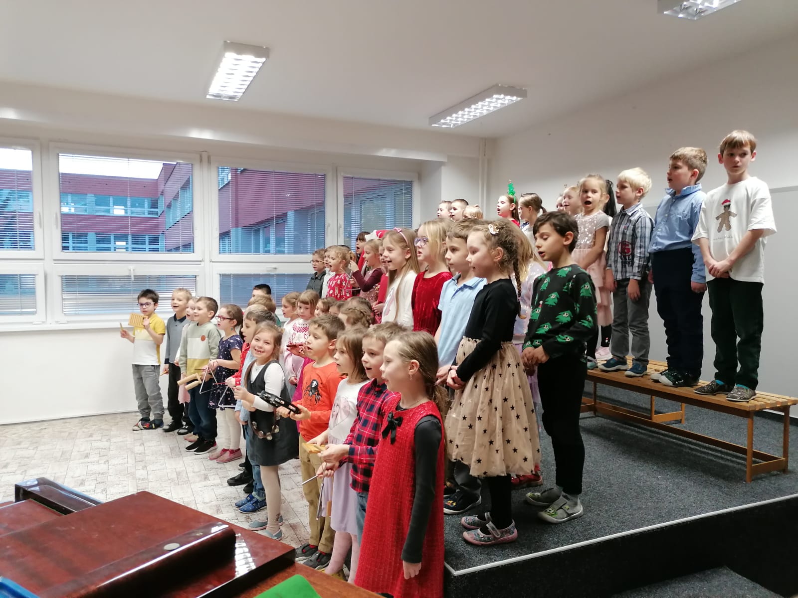 Vánoce v Trávě patří již k tradičním akcím naší školy. Letošní vánoční jarmark zahájili naši nejmenší žáci – prvňáčci, kteří se představili svým vánočním pásmem. Na jejich vystoupení navázala sólo hra na housle Tadeáše z 5. třídy a poté následovalo vystoupení taneční skupiny Mirabel.
