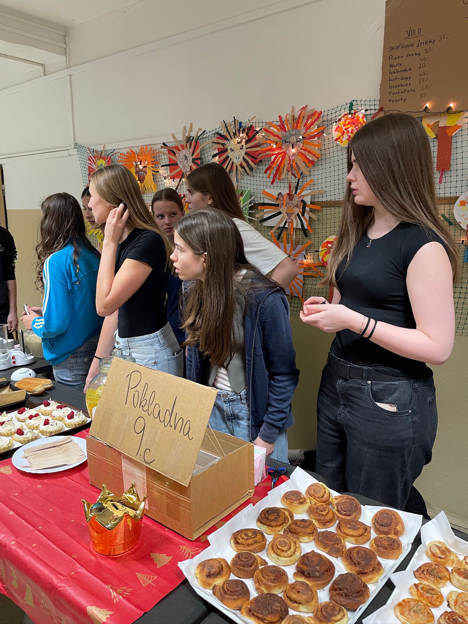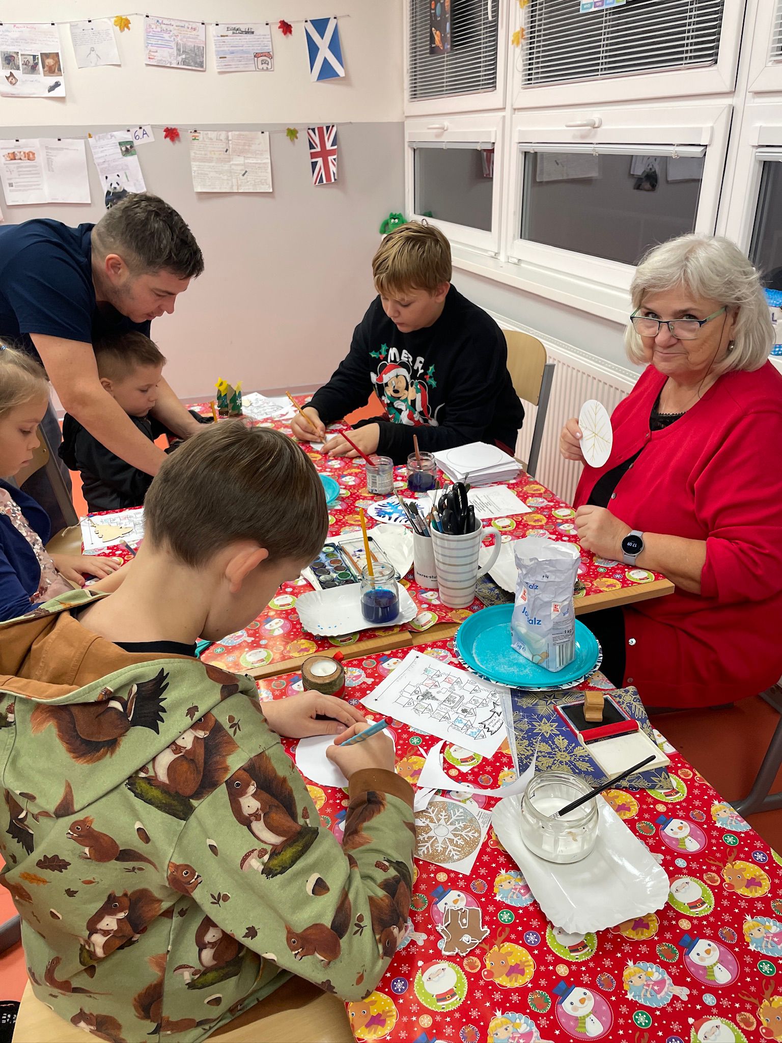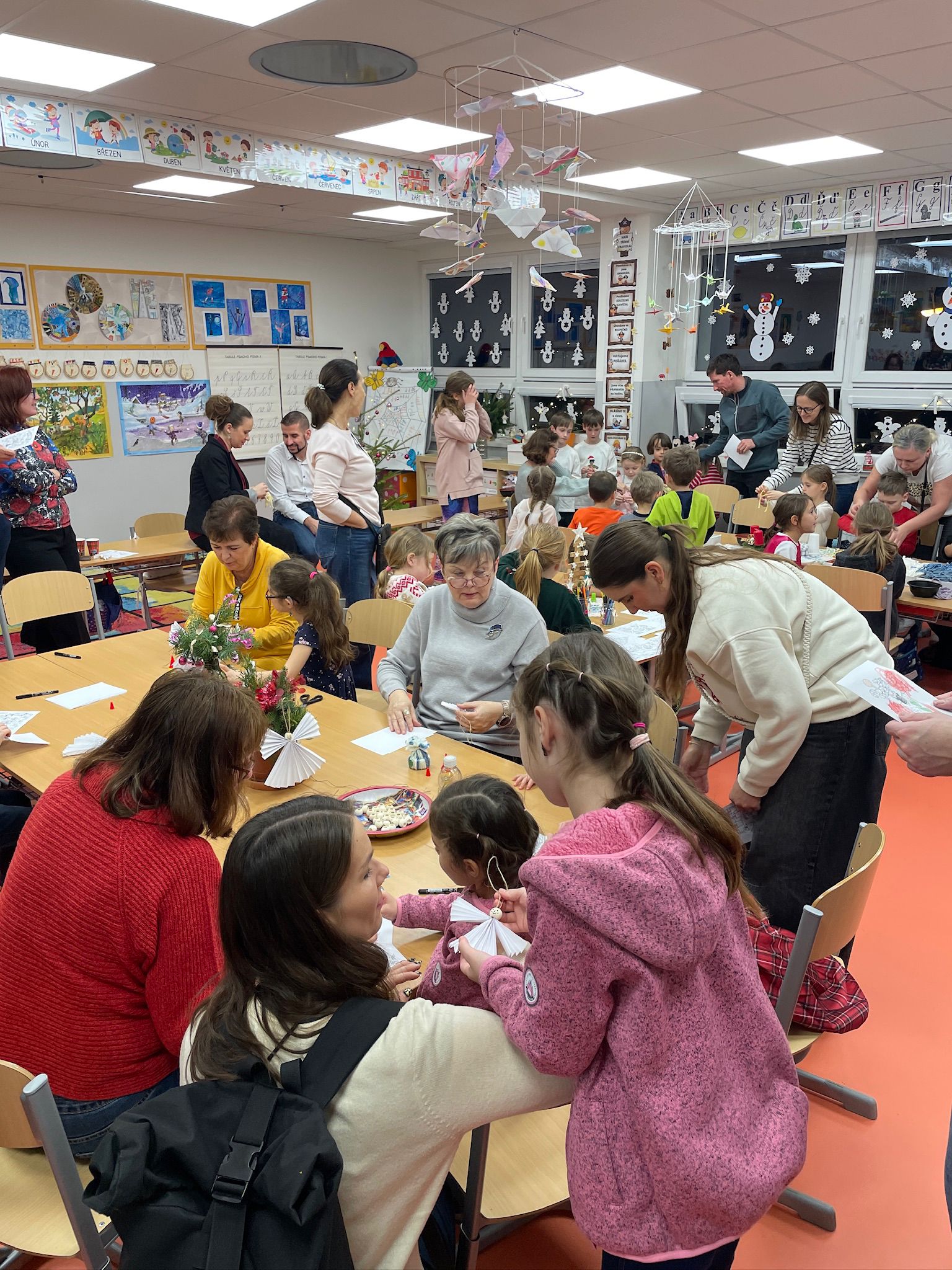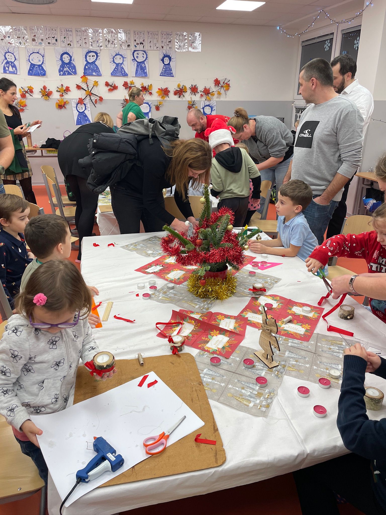Po kulturním programu se škola proměnila v místo tvoření a milých setkání. Připravené byly vánoční dílničky, kde si děti i dospělí vyráběli drobné dekorace, fotokoutek pro zachycení společných chvil a také kavárna žáků 9. tříd, která nabízela něco dobrého na zahřátí i na mlsání.