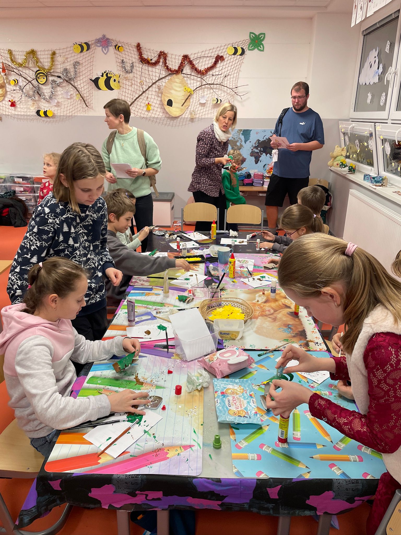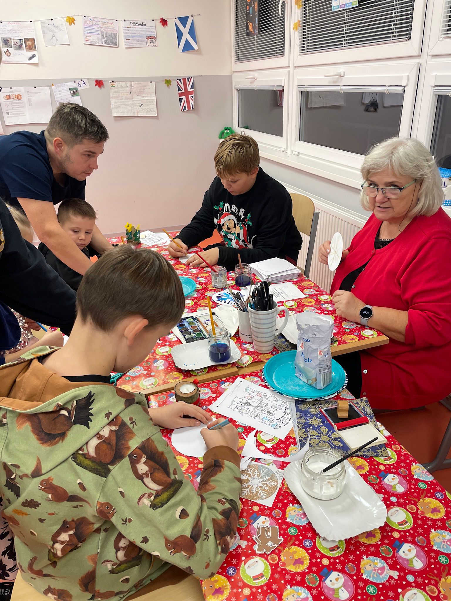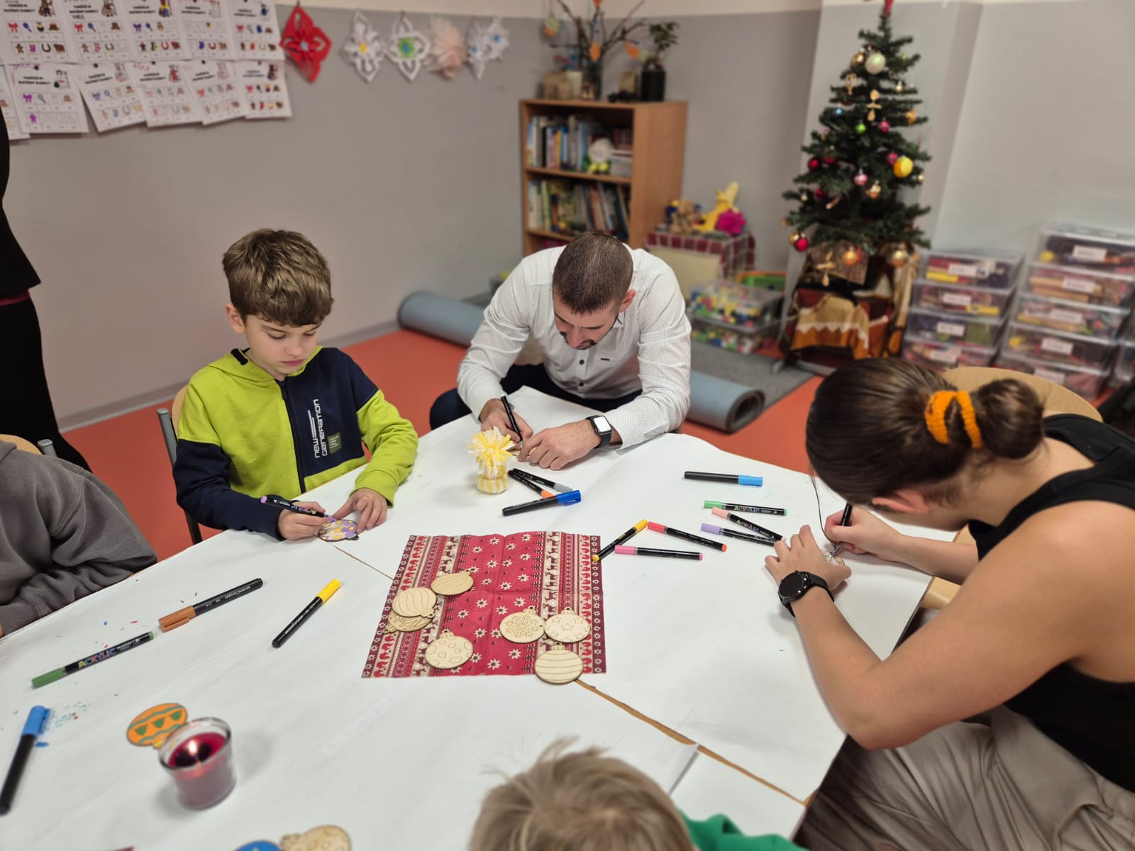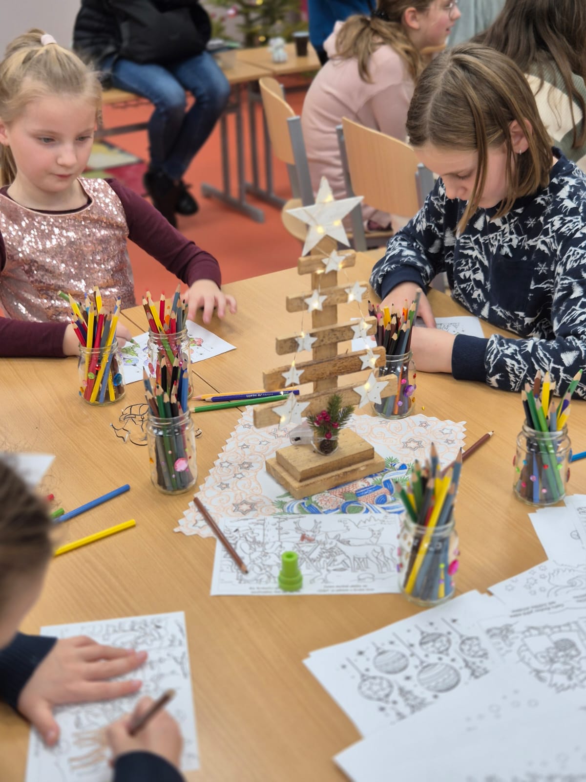 Po kulturním programu se škola proměnila v místo tvoření a milých setkání. Připravené byly vánoční dílničky, kde si děti i dospělí vyráběli drobné dekorace, fotokoutek pro zachycení společných chvil a také kavárna žáků 9. tříd, která nabízela něco dobrého na zahřátí i na mlsání.