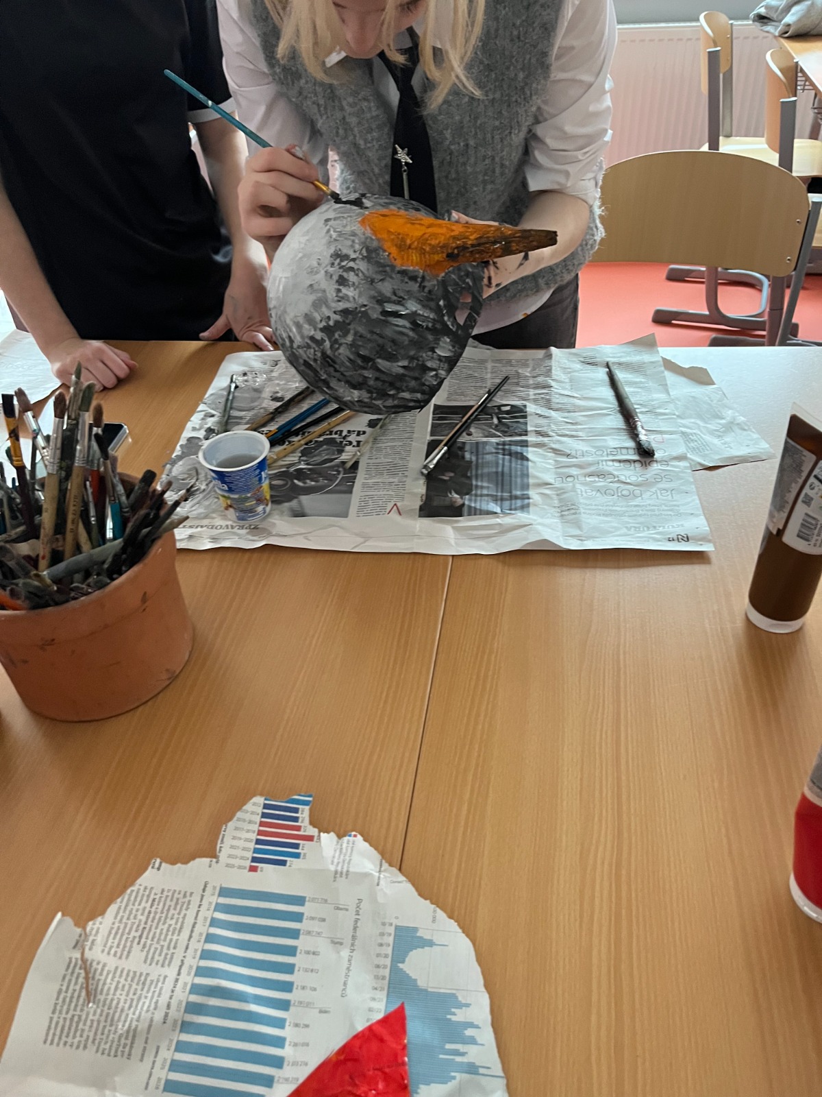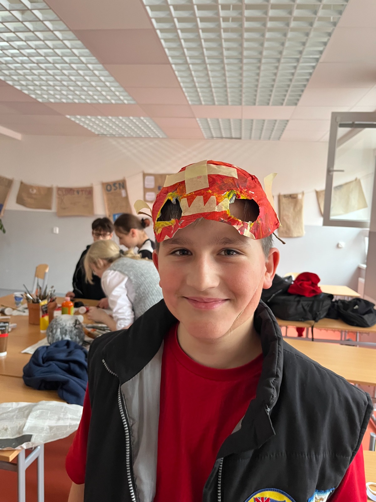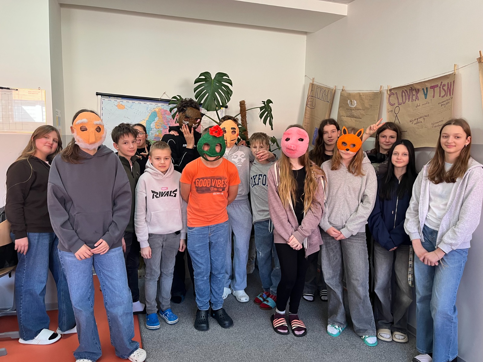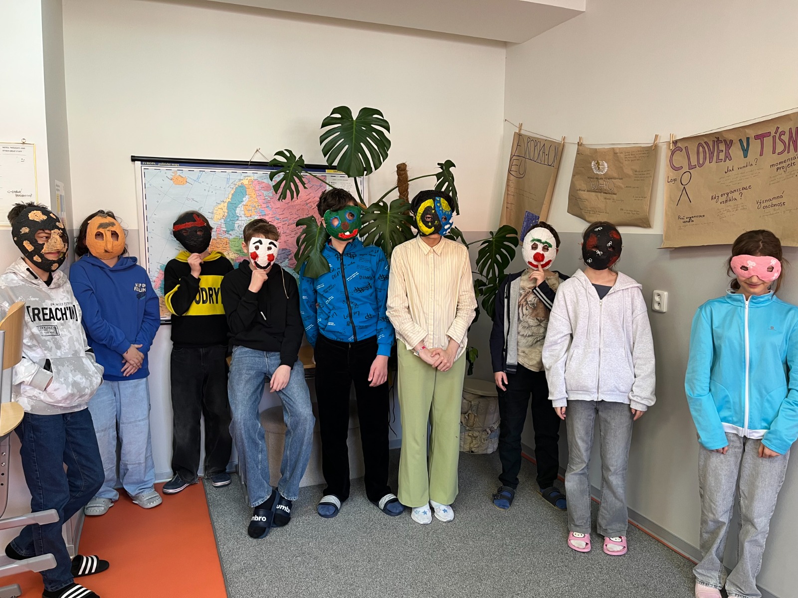 Žáci sedmého ročníků pracovali v předmasopustním období na výrobě kašírovaných masek vlastních návrhů.